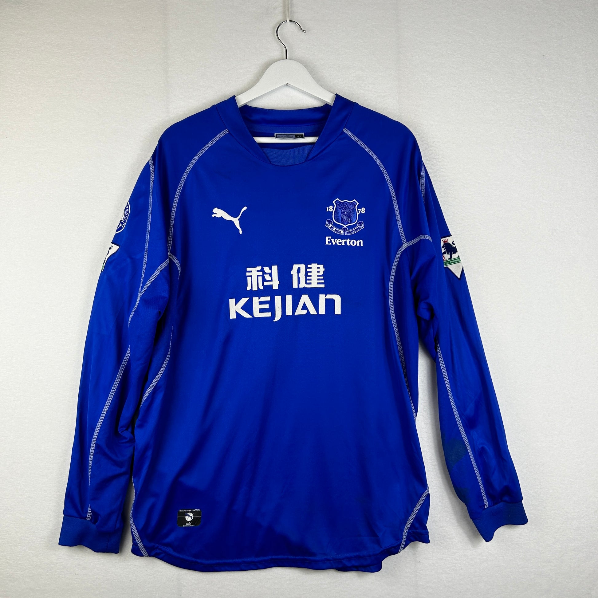 Shirt info: The Everton home shirt in the 03/04 season. Made by Puma and sponsored by Kejian.