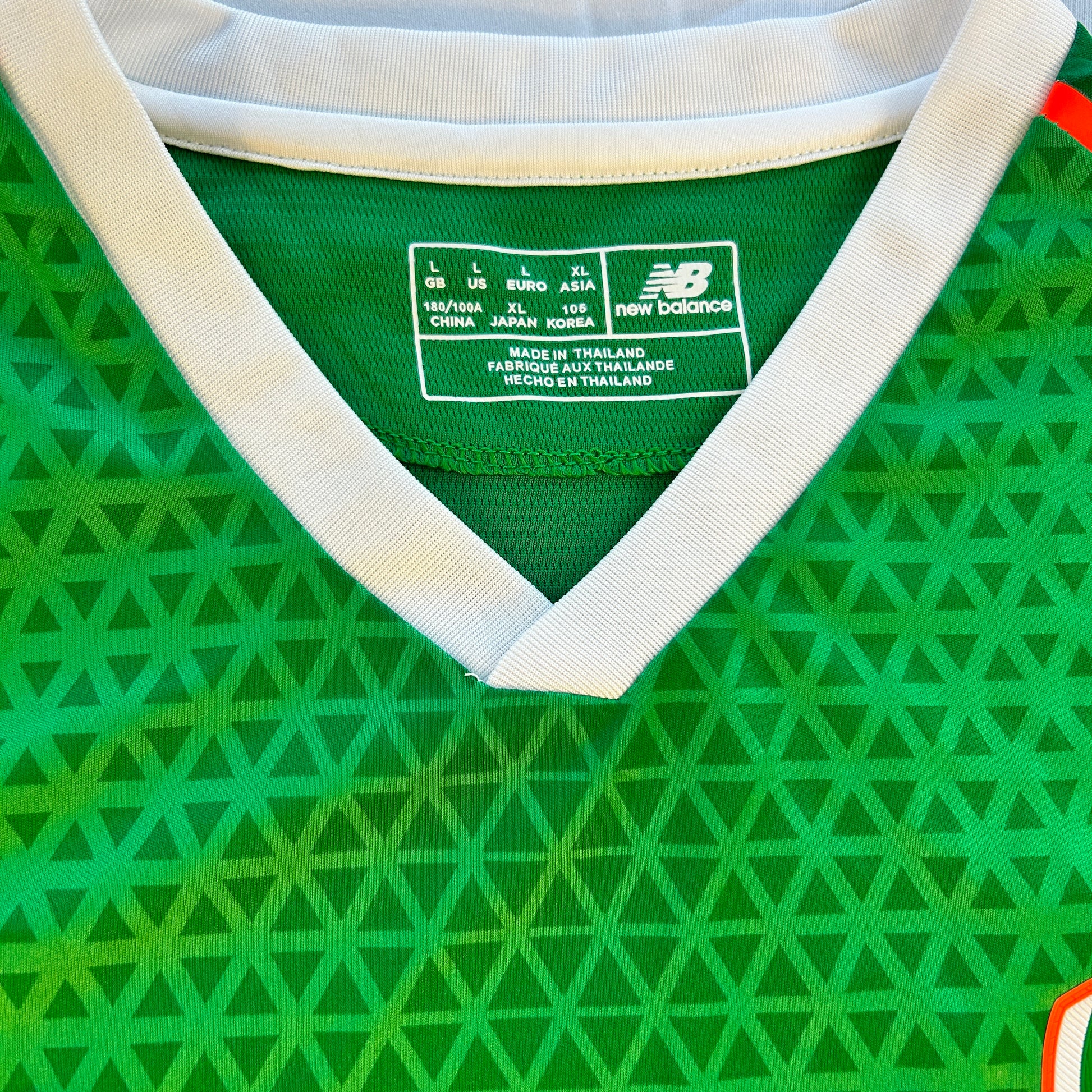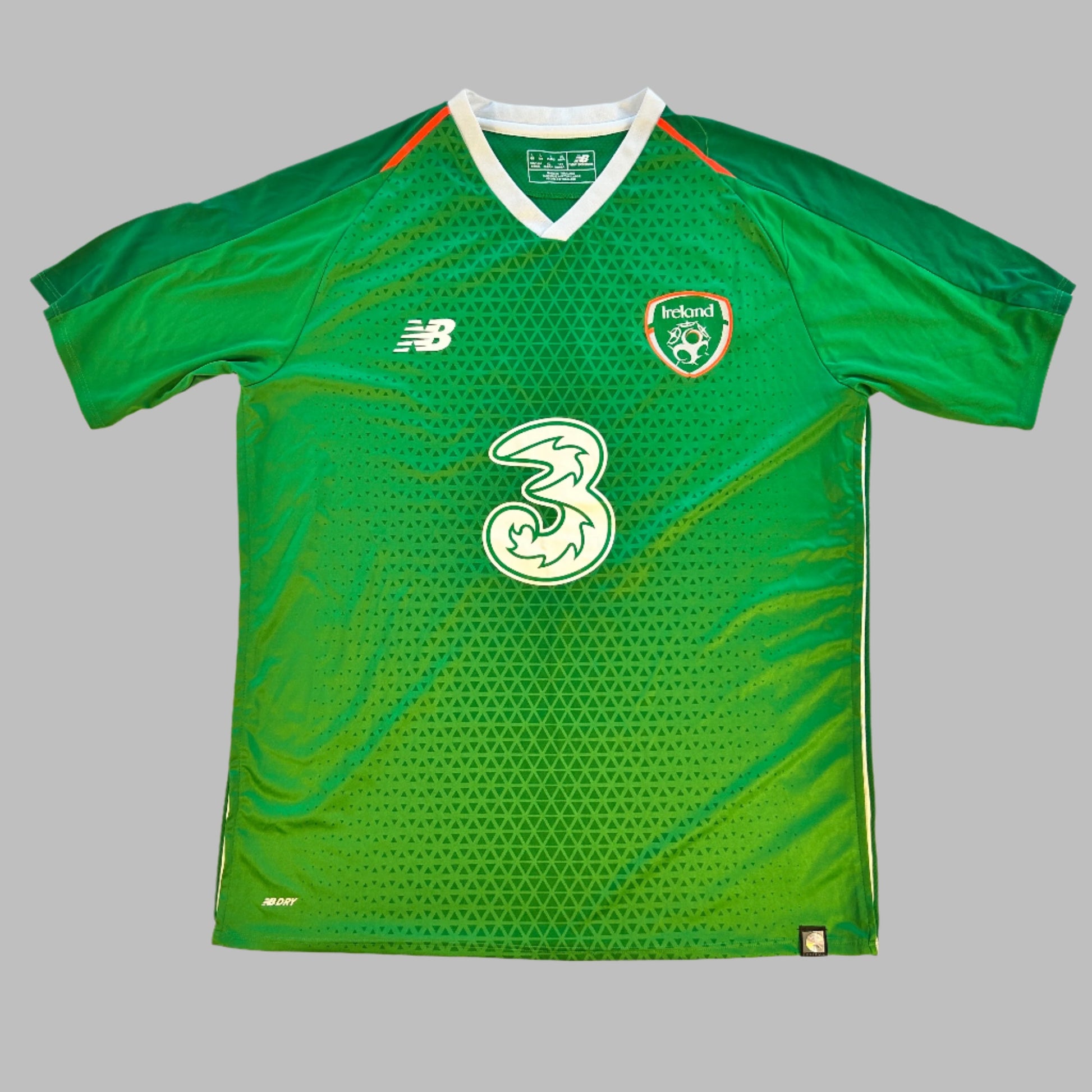 The green home shirt with 3 sponsorships for Ireland in 2018.