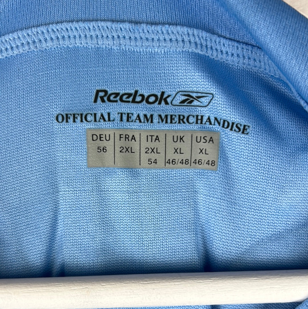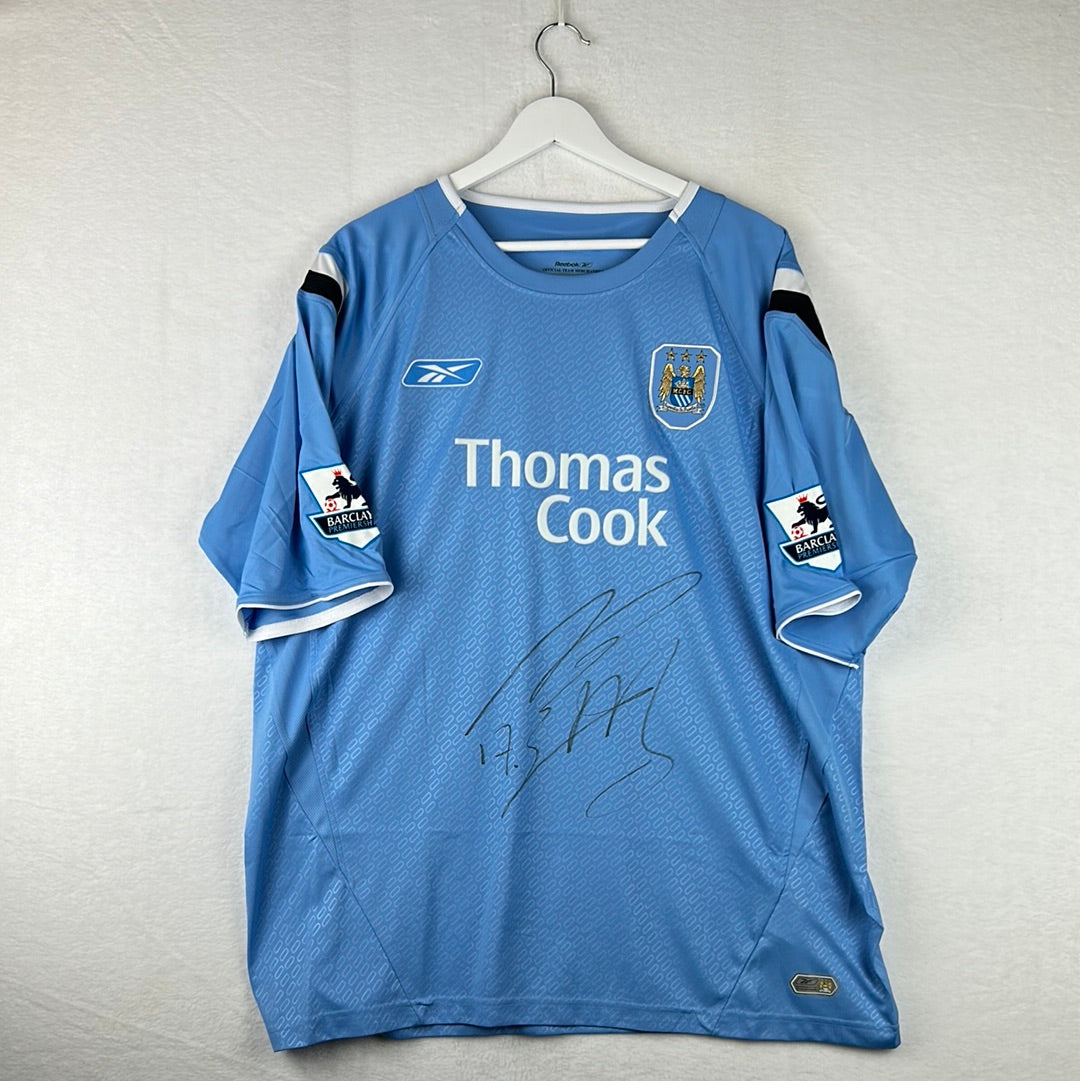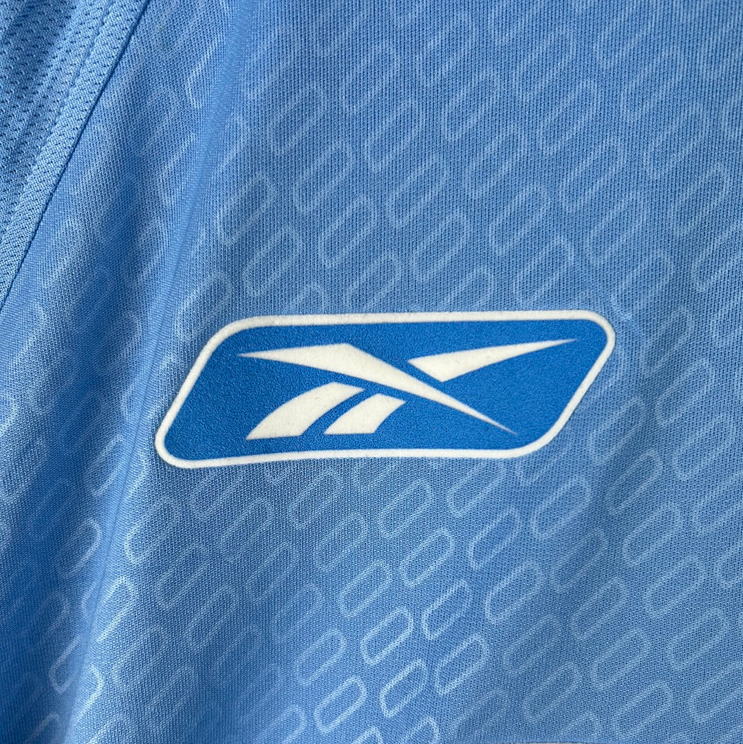 Shirt info: The home shirt for Manchester City in the 2004/2005 & 2005/2006 seasons. Made by Reebok and sponsored by Thomas Cook.