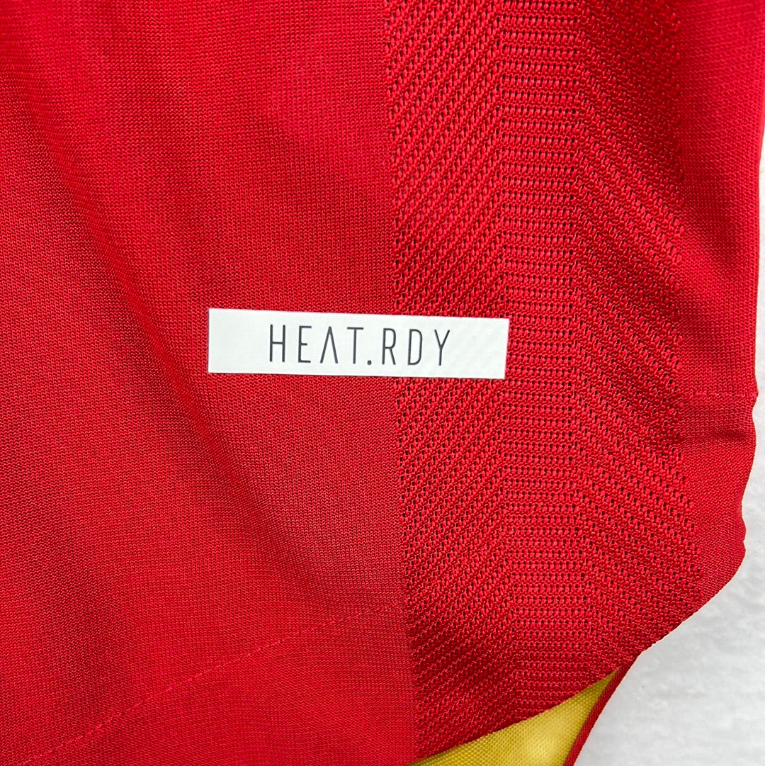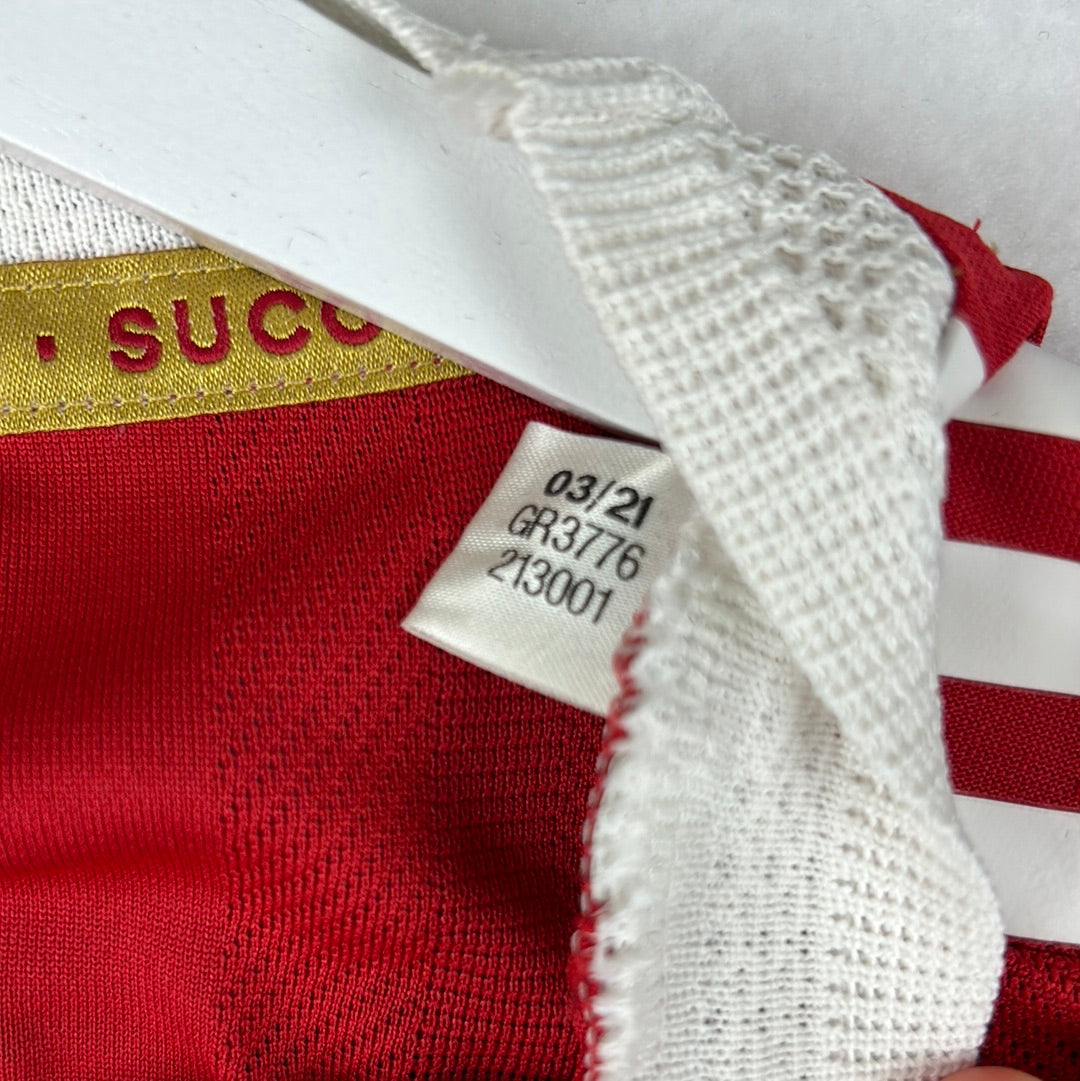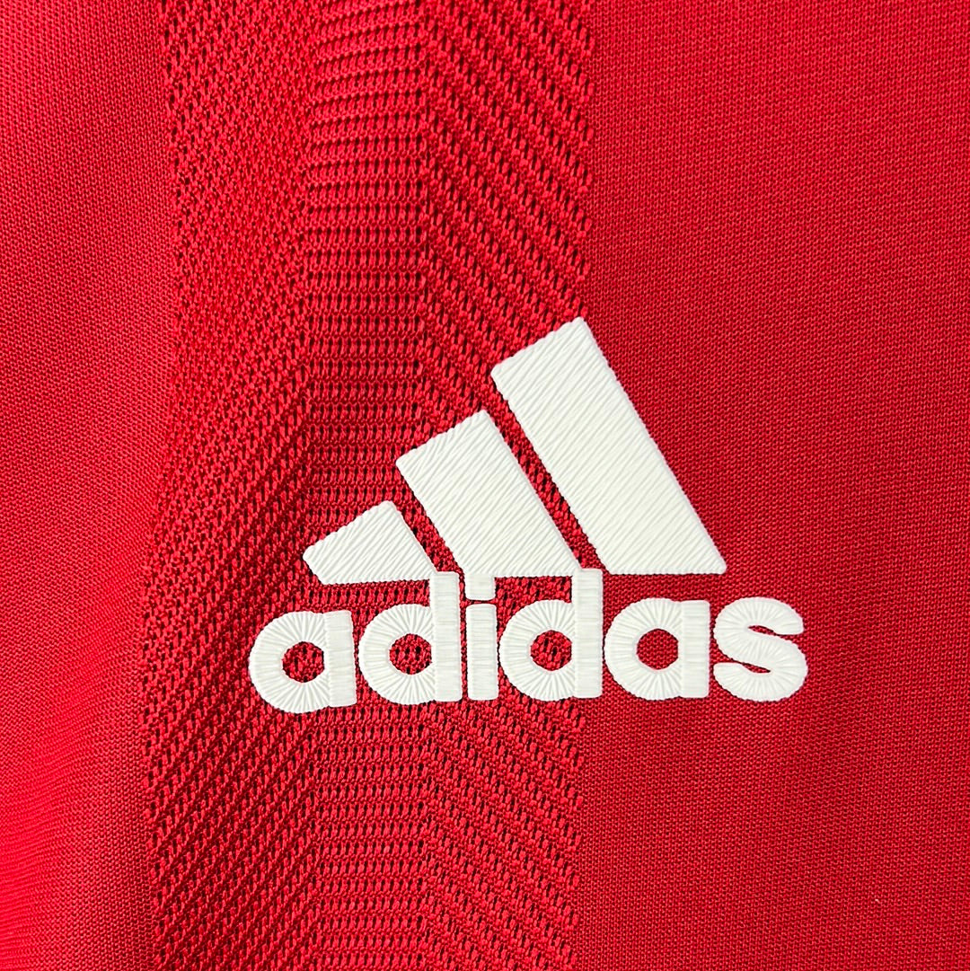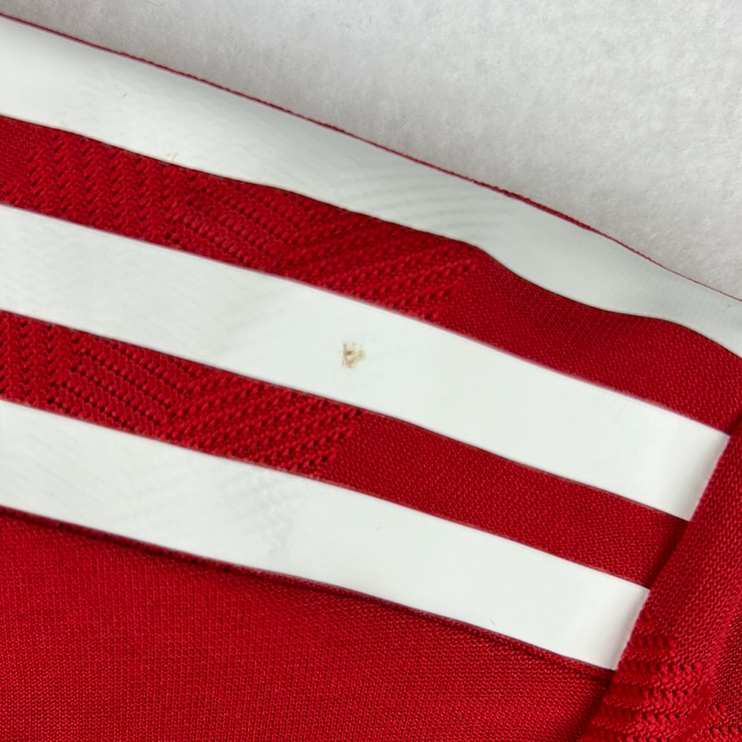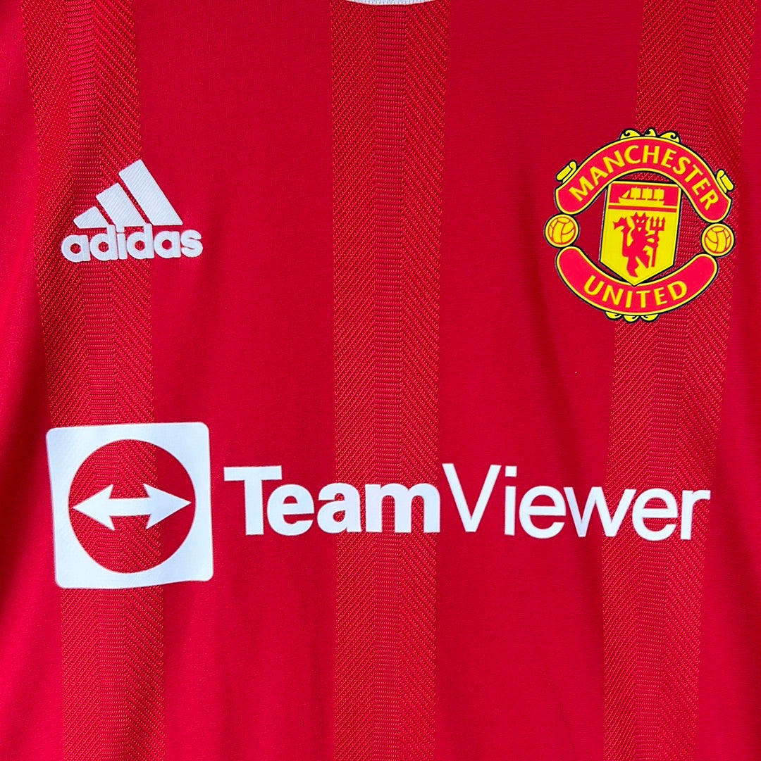 Shirt info: An authentic heat.rdy Manchester United 21/22 home shirt, player issue. It is a size 6 which is only for the players. The shirt has a printed badge and the Adidas logo. It also printed stripes on the sleeve with an extra luminescent to reflect better under bright lights.