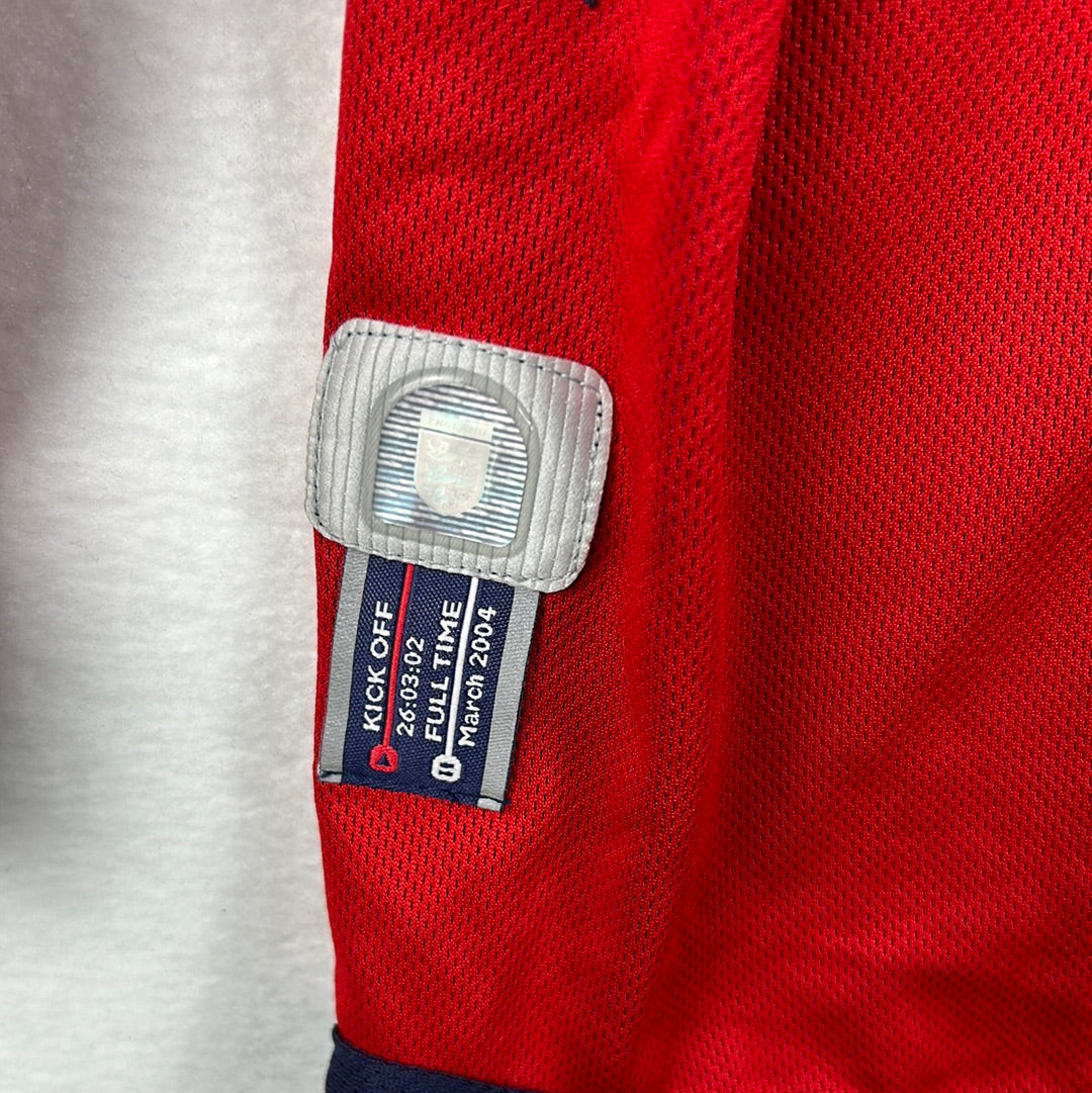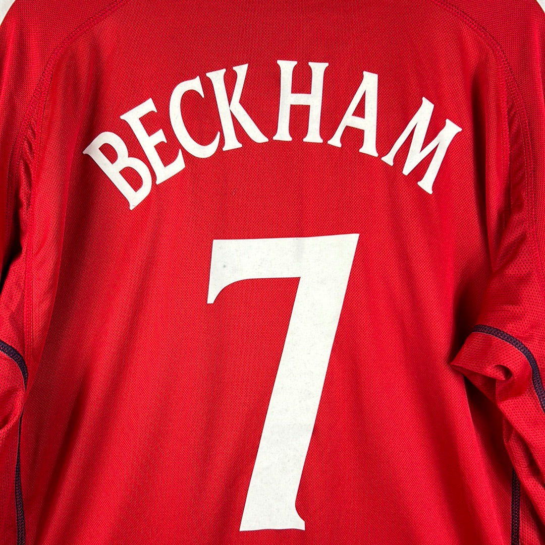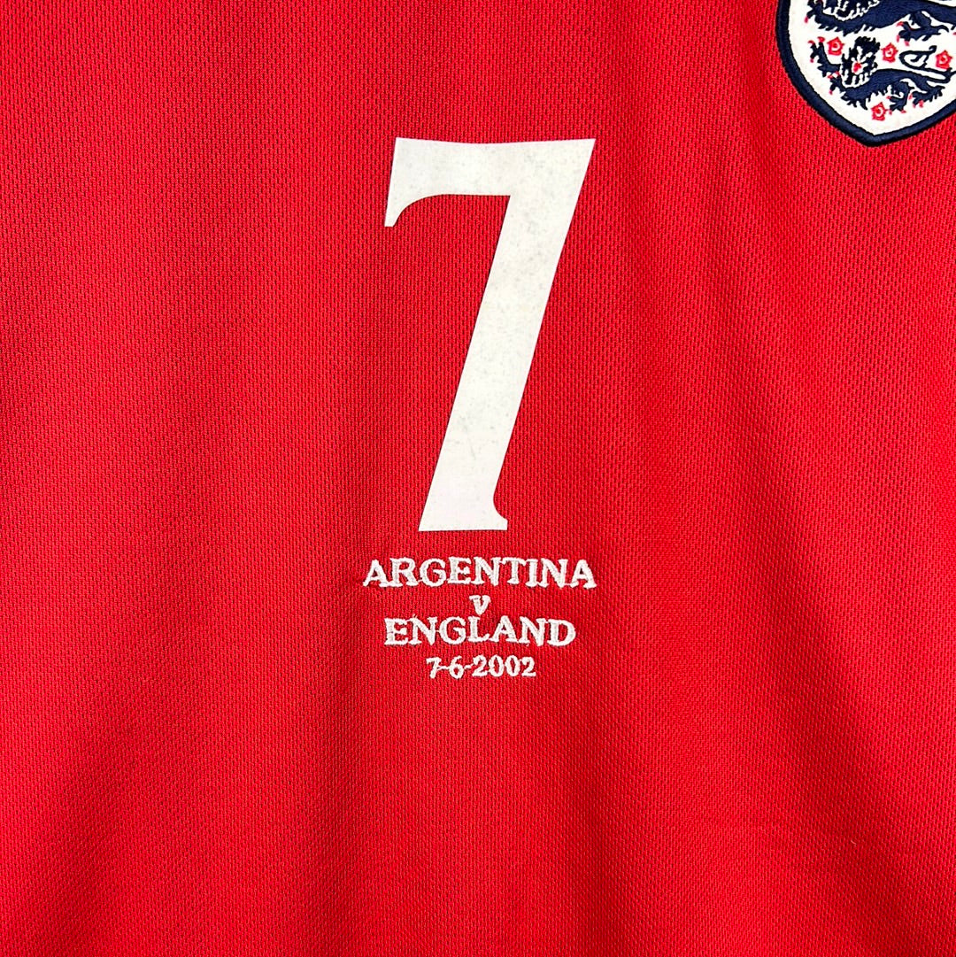The long sleeve shirt has Beckham 7 print and has the England v Argentina 2002 embroidery added.