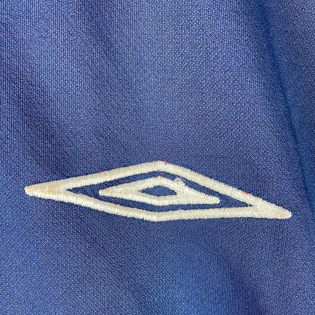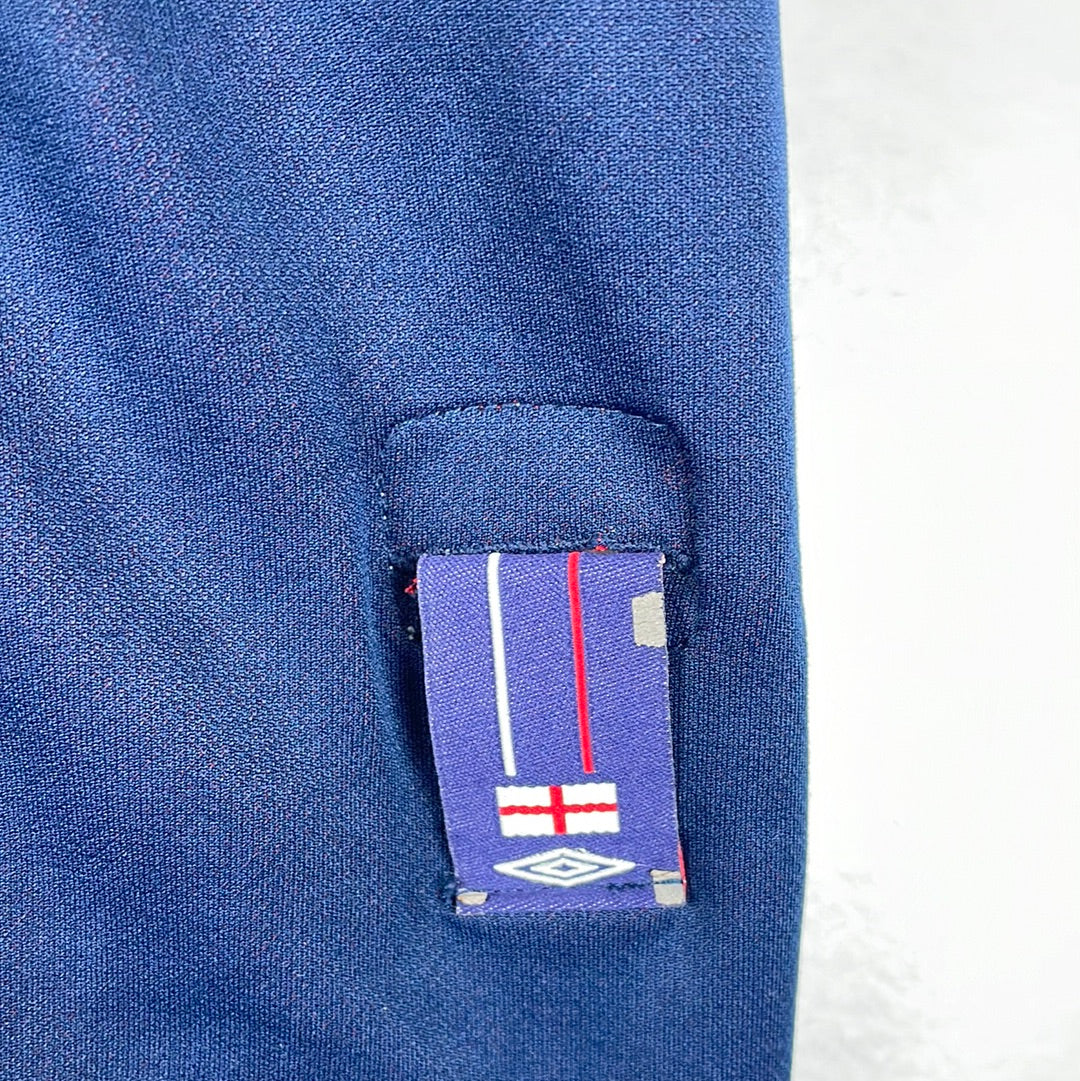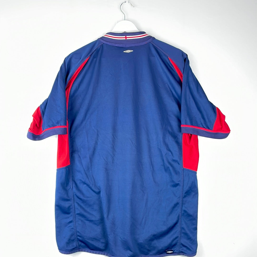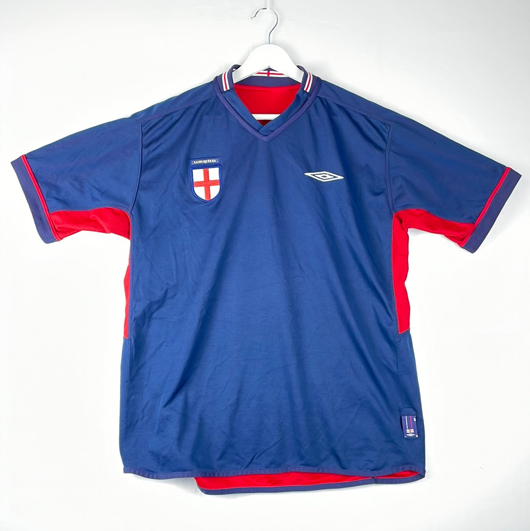 A reversible away and third shirt from England and Umbro in 2002. This has a red side and a blue side.