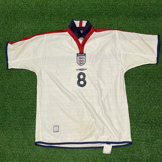 England 1998 Home Shirt - Large - 7.5/10 - SCHOLES 8 - Vintage England Shirt
