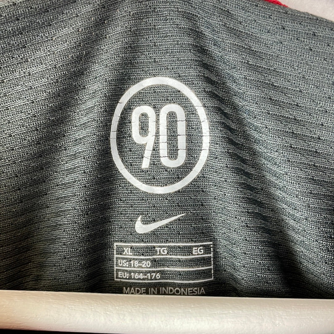 Shirt info: This is a thicker style T90 training shirt from Nike, compared to the usual mesh style ones. It has a red panel down the side and is a heavier material than a standard football shirt at the time. It was most likely a training top for the colder months.