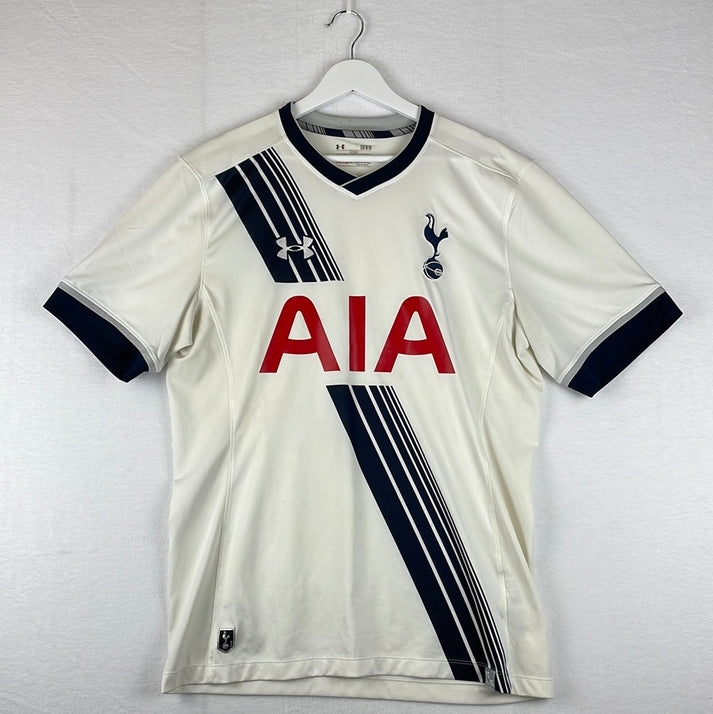 It appears that the 2015/16 home top is the first time that Spurs have donned a sash on their primary shirt. However, it was a sash with a difference as it was made up of six different sized navy stripes. The idea behind the away kit for this season was fairly similar, with Under Armour opting for various different sized hoops looping around it.