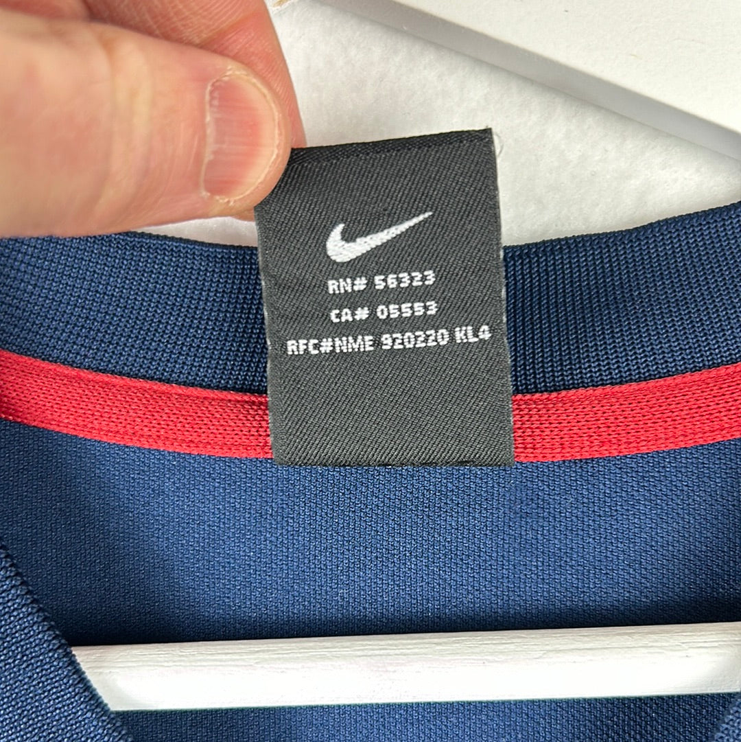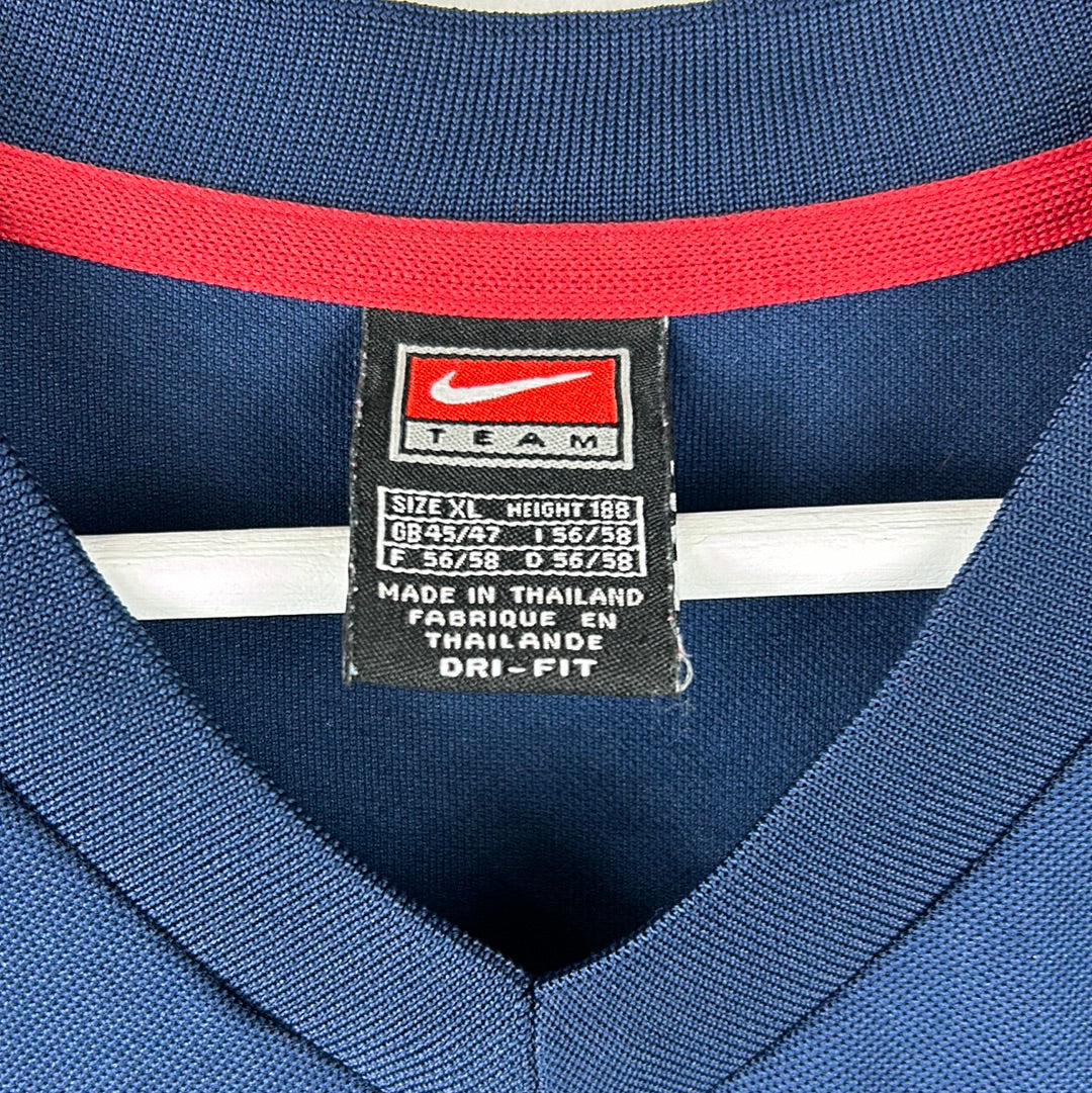 Shirt info: This shirt is a template for Nike 2000/2001 training shirts. It was used by Arsenal and Barcelona, among other clubs. The shirt has the Nike logo on the front and the Arsenal badge on the sleeve.