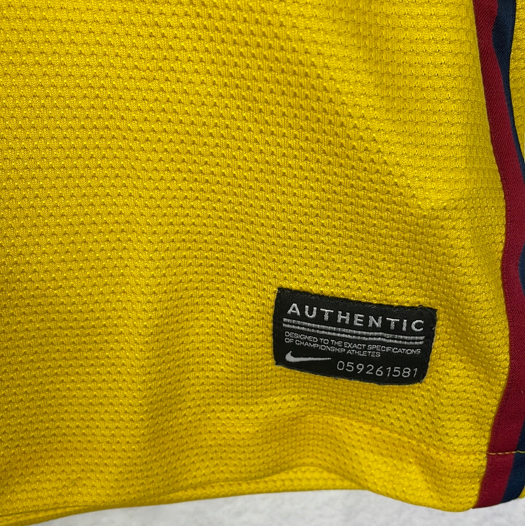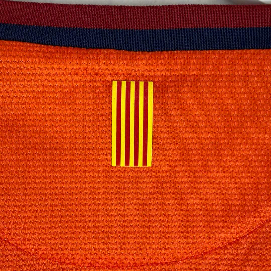 Shirt info: A nice orange faded to yellow Barcelona shirt from the 2012/2013 season where Messi was in peak form. The fading design mirrors that of the home shirt although at a different angle. This is one of the best Barcelona away shirts of the recent period.