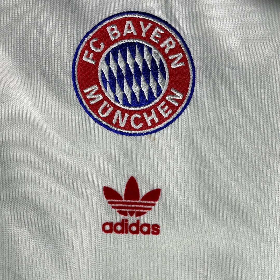 Shirt info: A vintage Bayern Munch T-shirt as part of the Adidas Originals range. This was launched for Bayern in the 2017/2018 season and takes a cue from classic Bayern shirt designs. This T-shirt was part of a range that also included a track jacket and hoody.