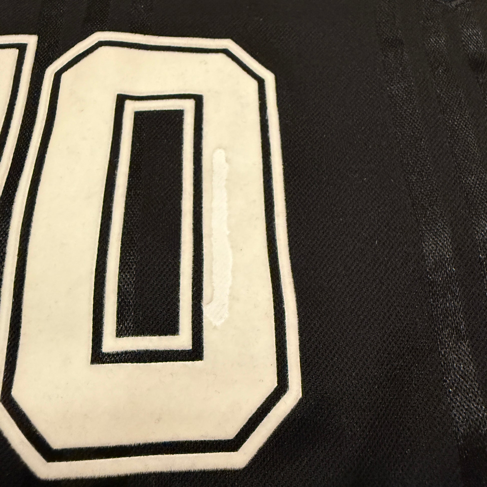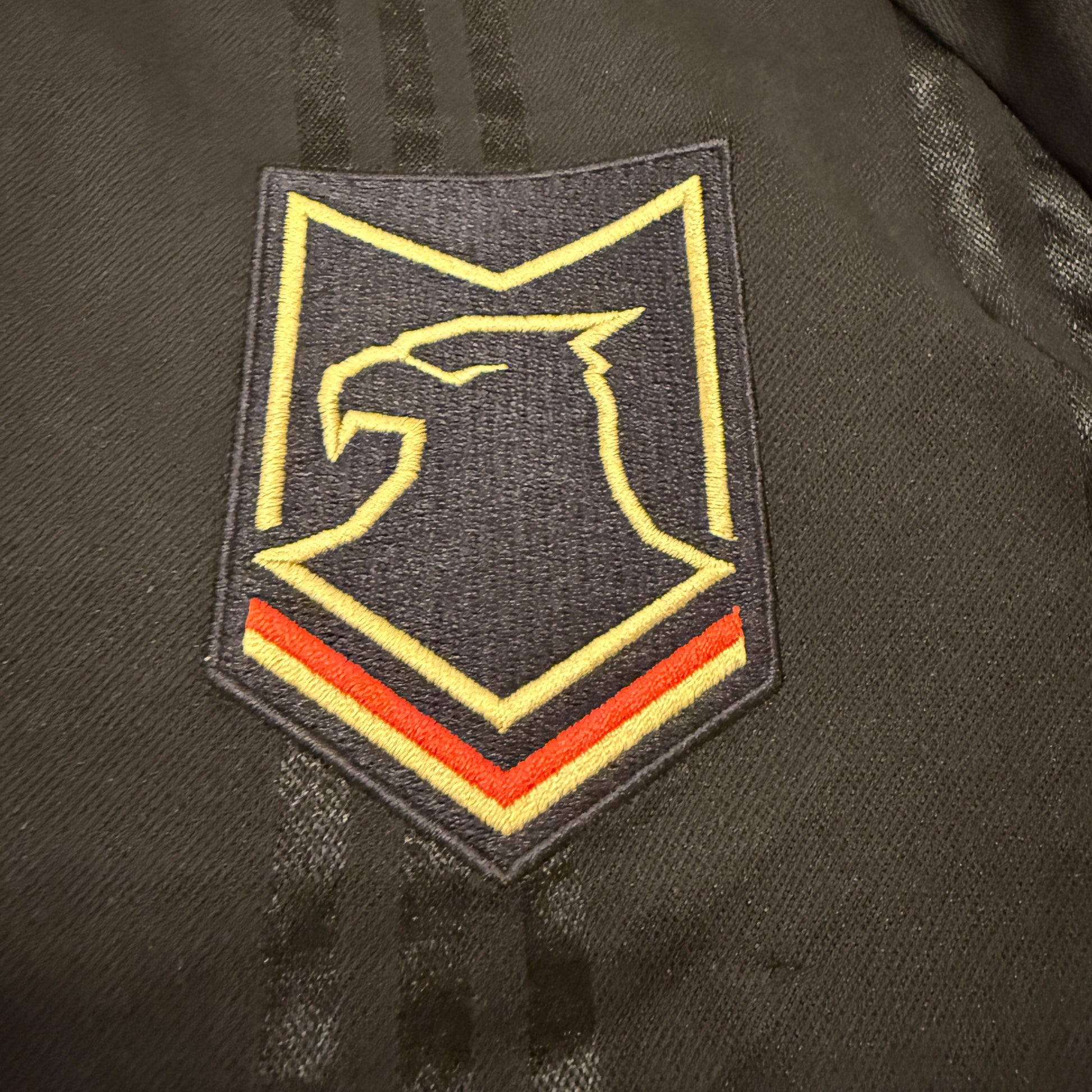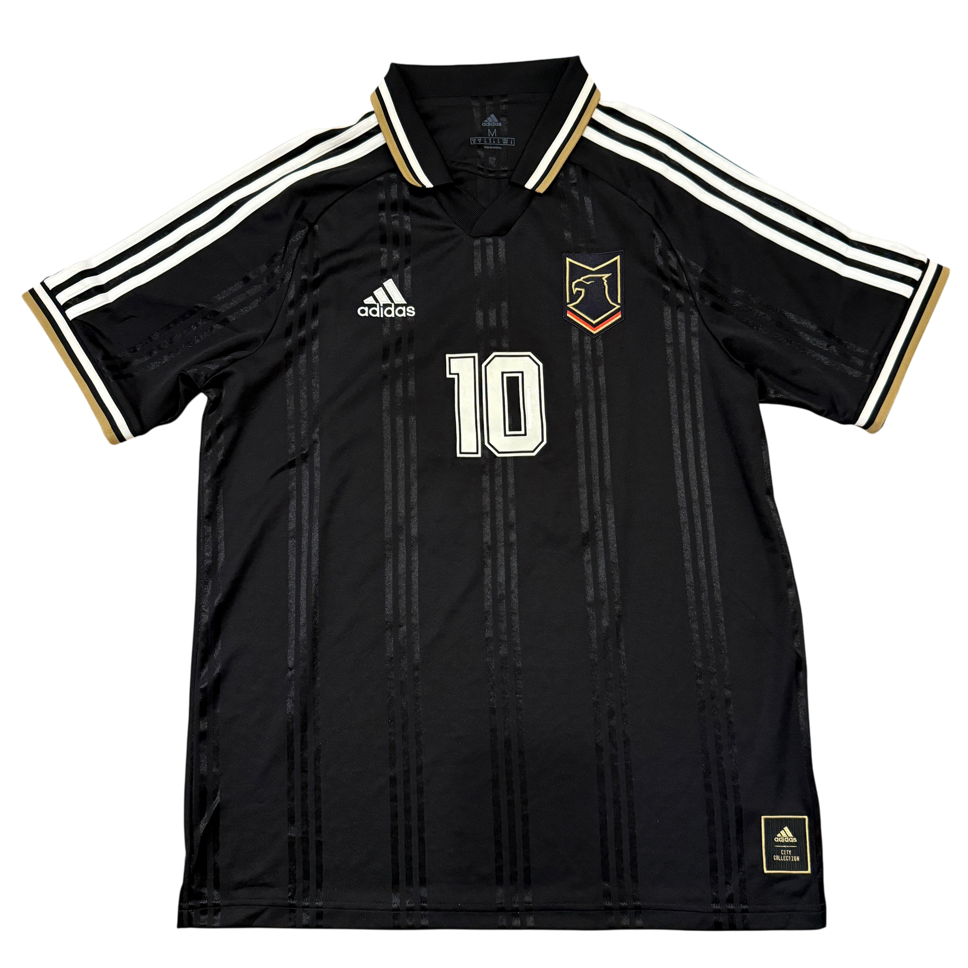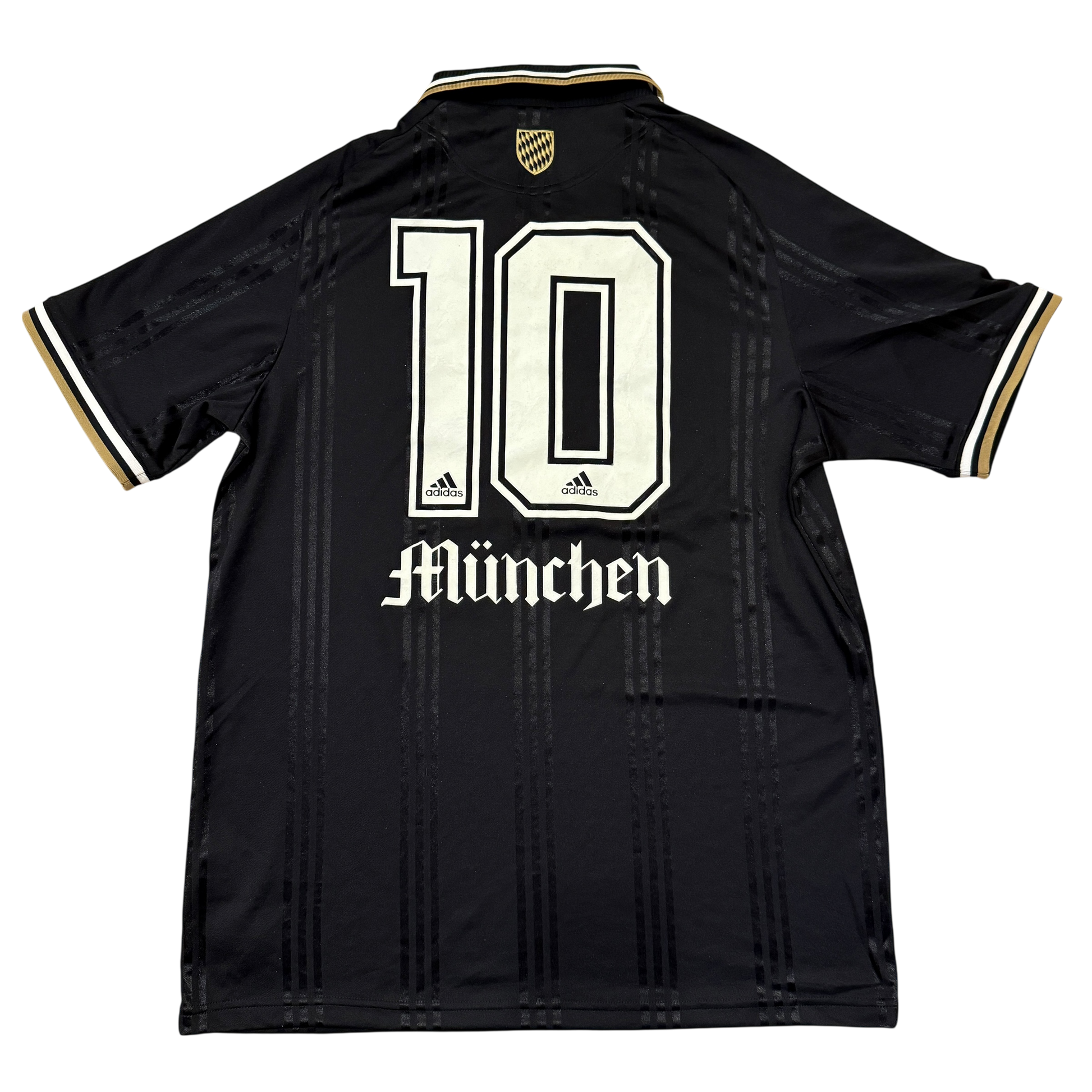Shirt info: This is Bayern Munich FC's city pack shirt. A black shirt with white and gold trim detailing.