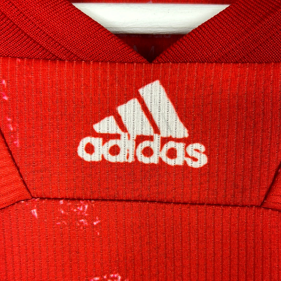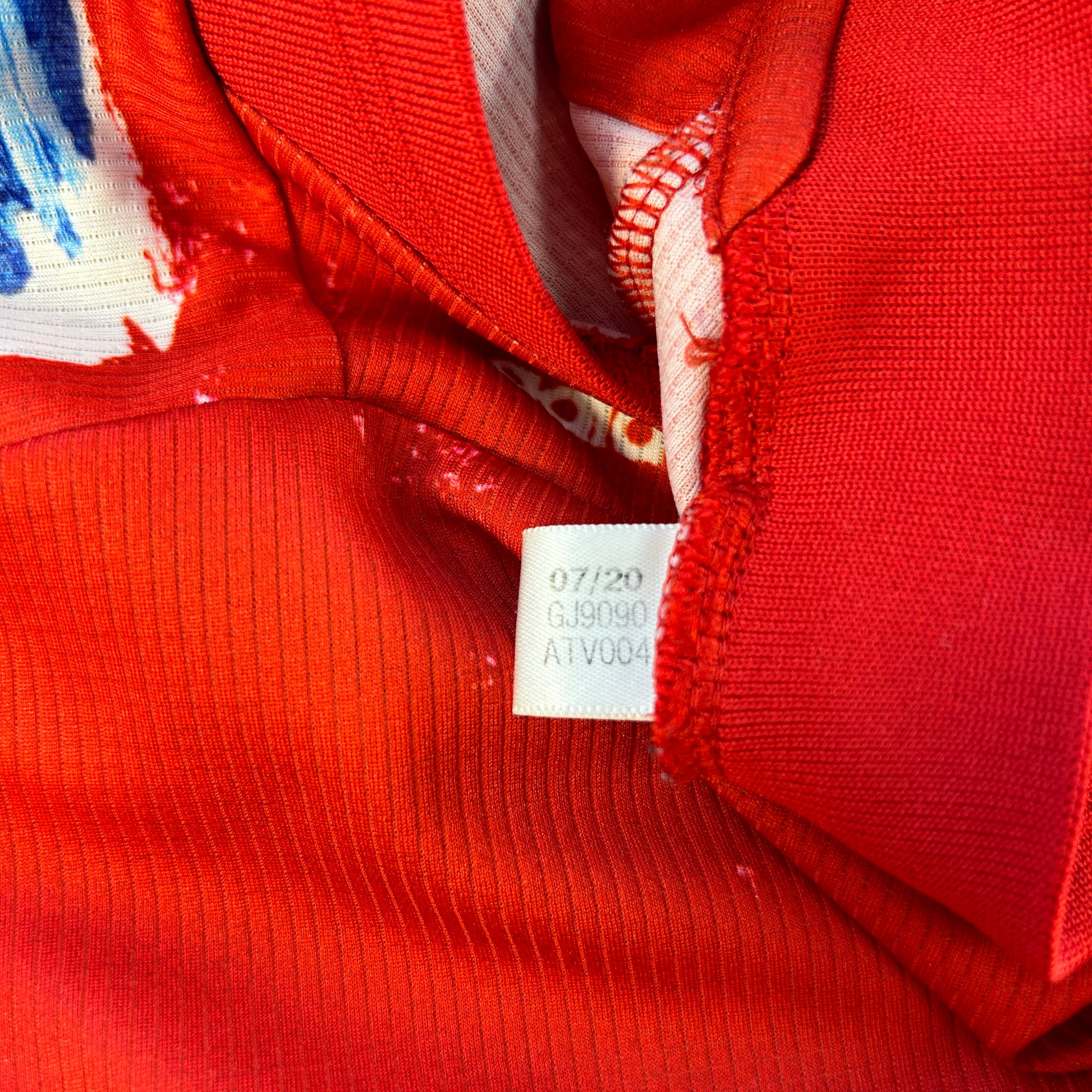 Shirt info: A Pharrel Williams-designed Human Race shirt. This was used by Bayern Munich and is a red sign of the classic early 1990s Adidas template. This is my favourite of the Human Race collection with the hand-painted 3 stripes over the shoulder being the stand-out design feature.