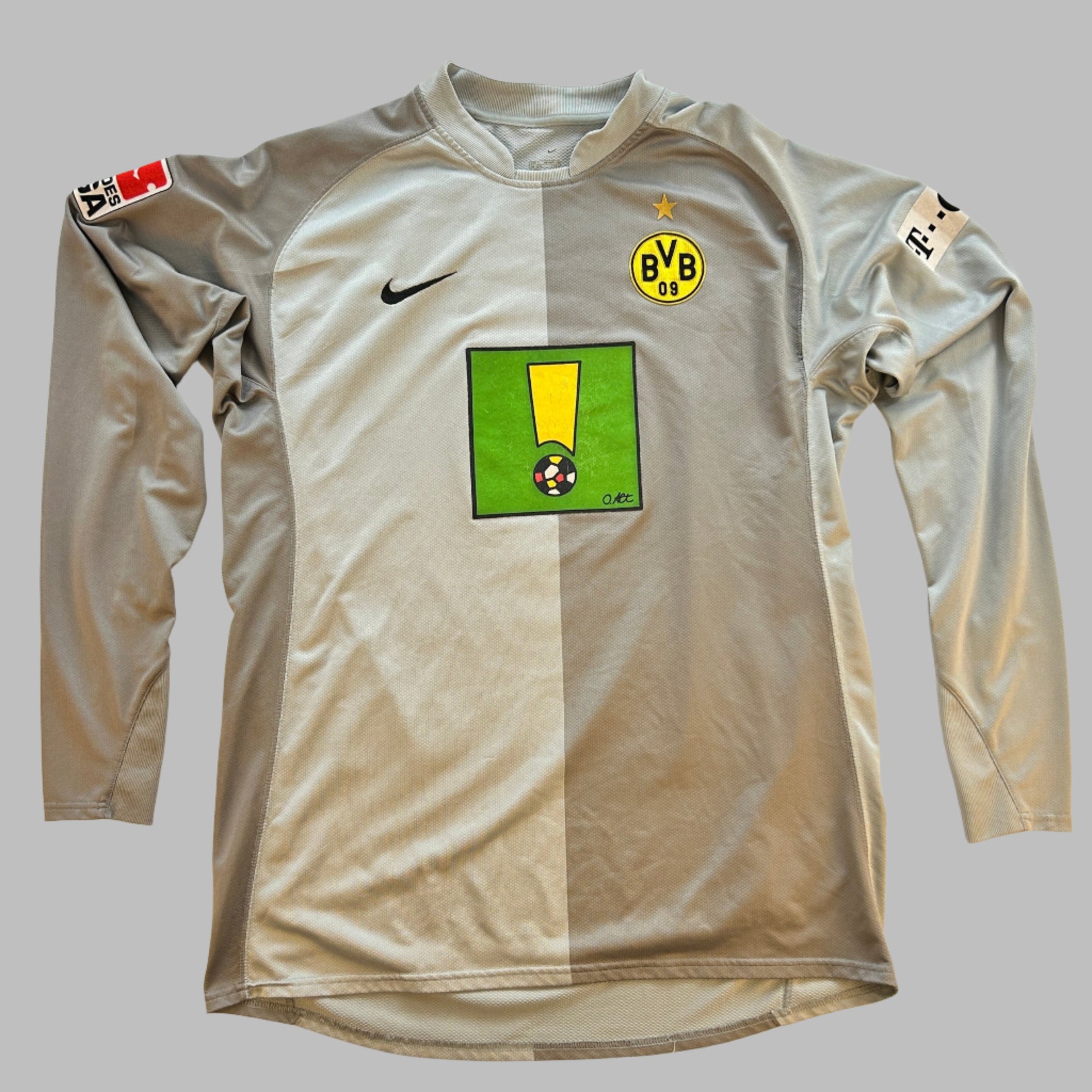 Shirt info: This is the away goalkeeper shirt for Dortmund in 2006/2007. It is very rare to find a shirt with the! sponsorship on the front. The shirt also has the Bundesliga patches on the sleeves. It is possible it is a player's shirt, as these may not have been commercially available, but I cannot provide full proof.