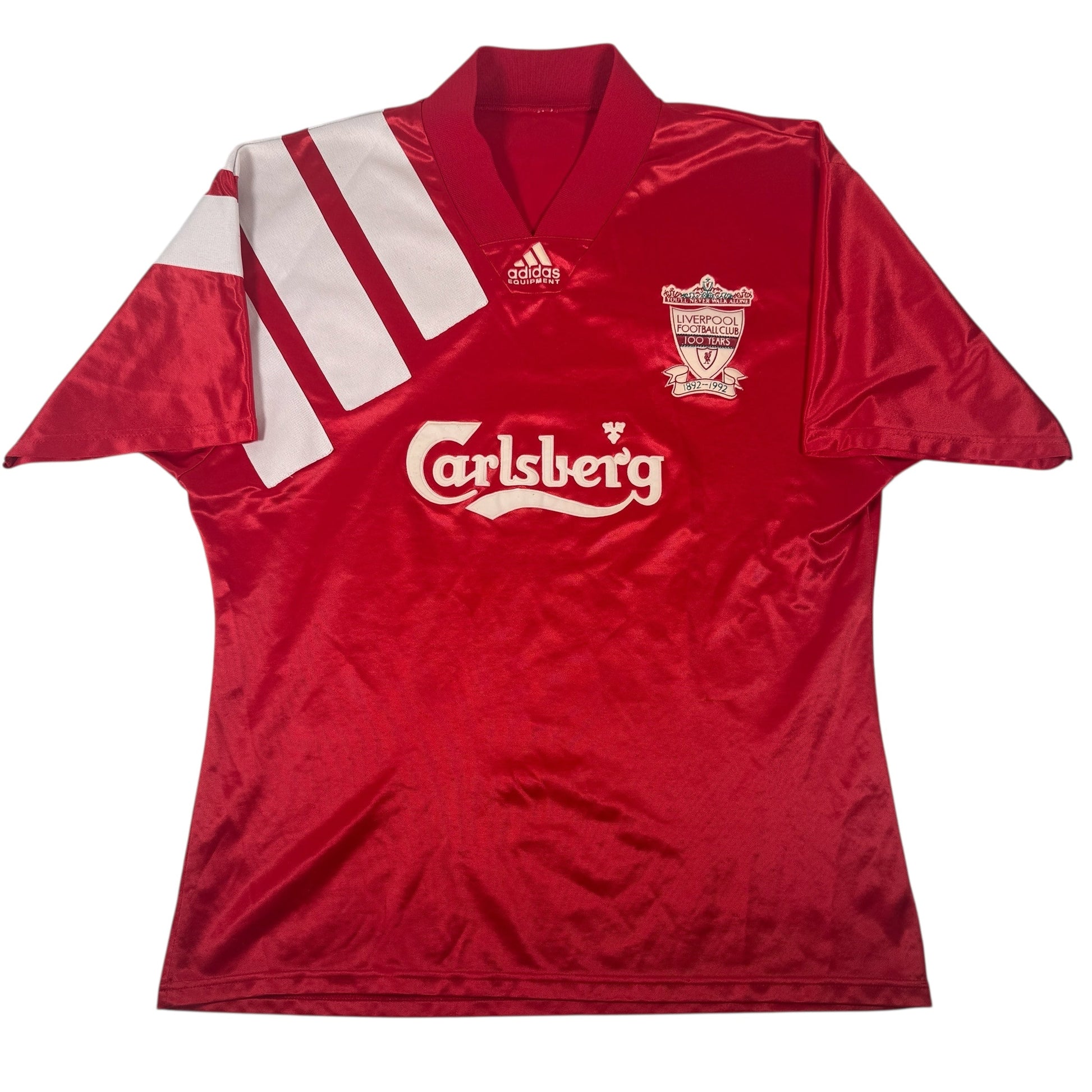 From the 1992/1993 campaign, this original red Adidas jersey is a standout piece for fans or collectors of classic football kits.