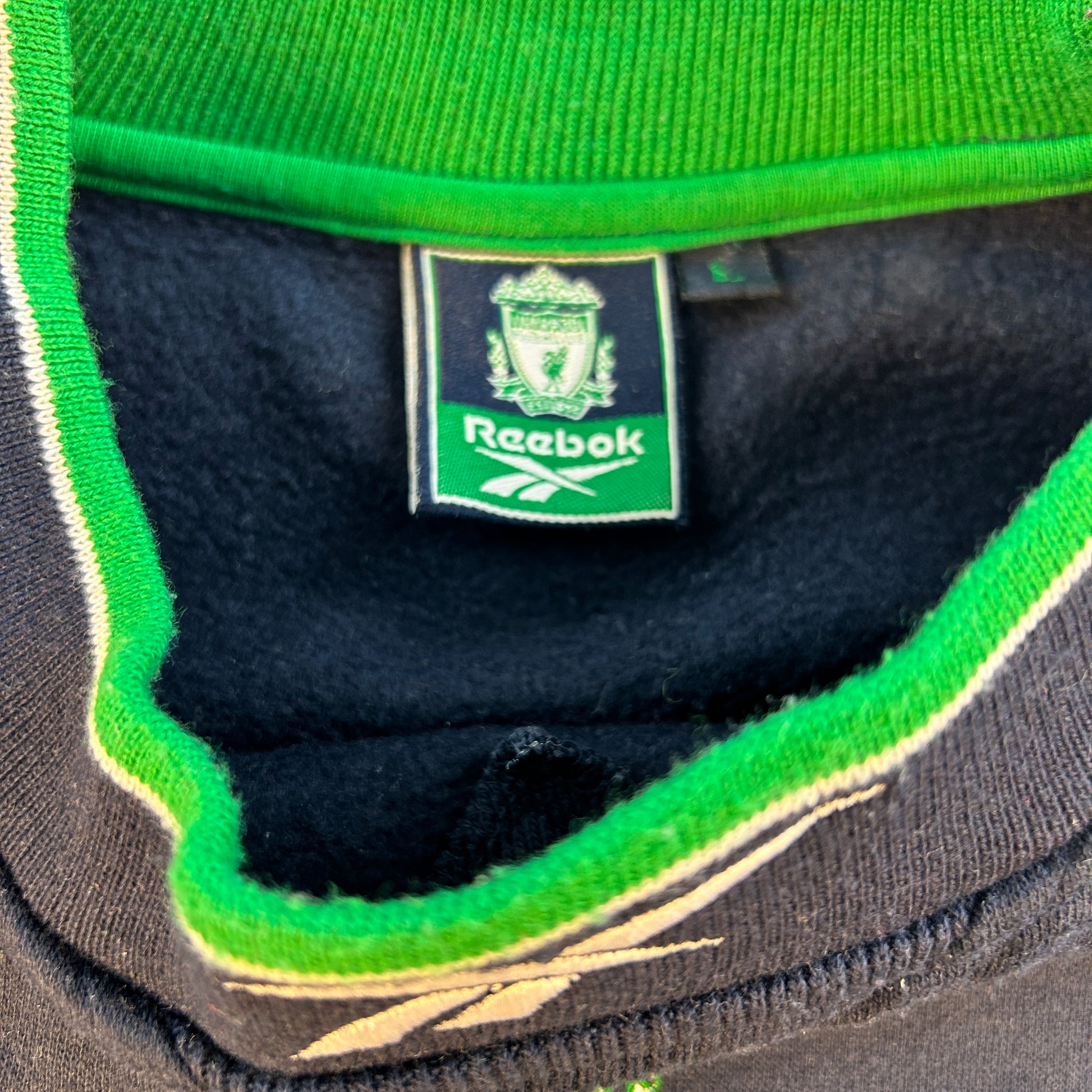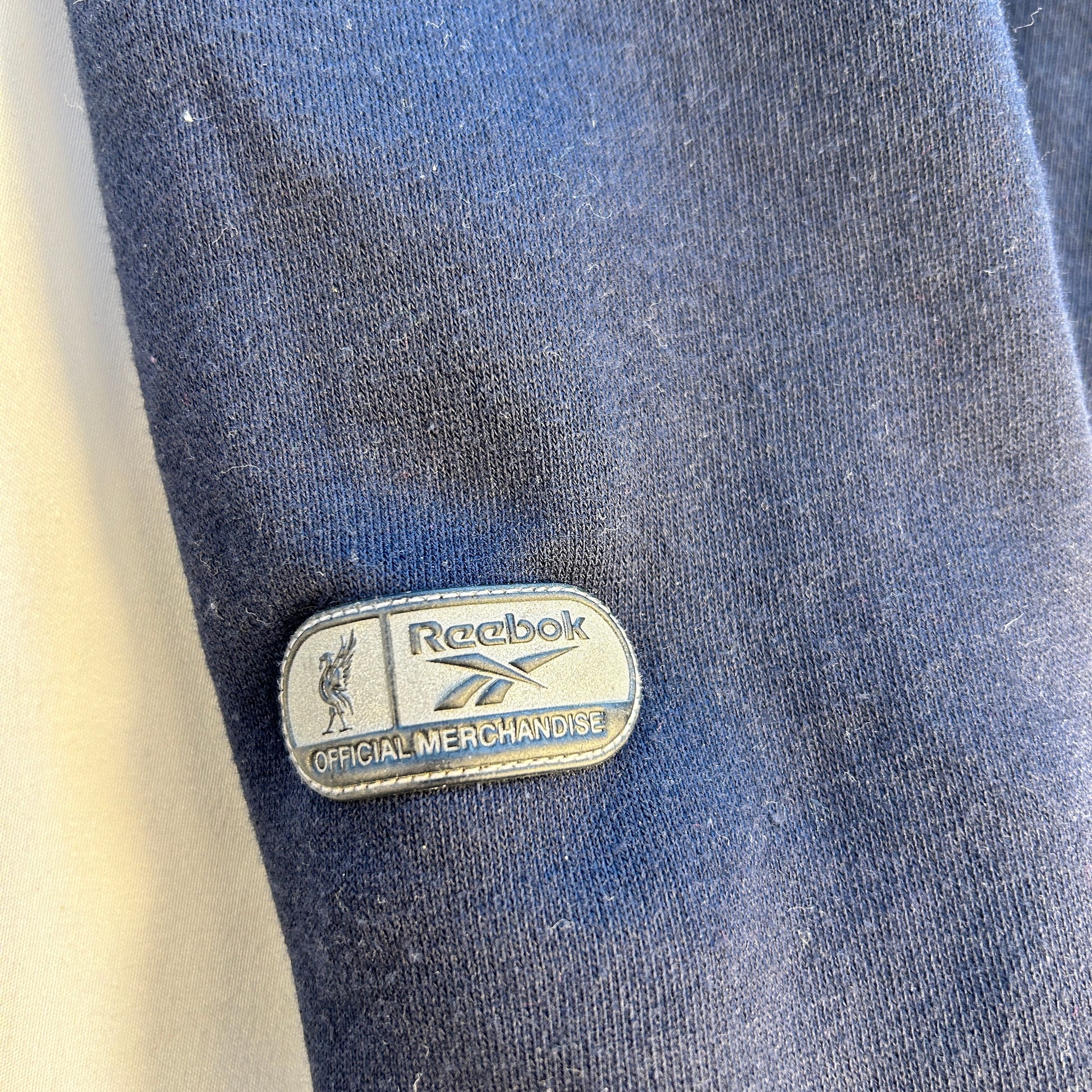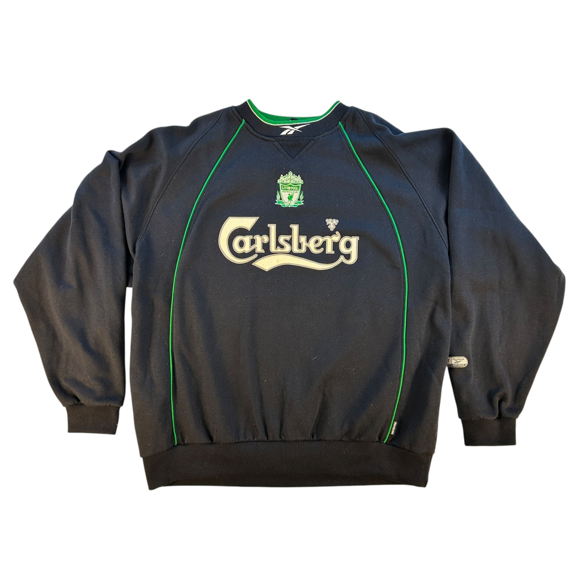 Shirt info: A Liverpool jumper/ sweatshirt from the 1999/2000 season. A dark blue Reebok jumper with Carlsberg sponsorship on the front. Thejumoper has the Reebok logo on the back.