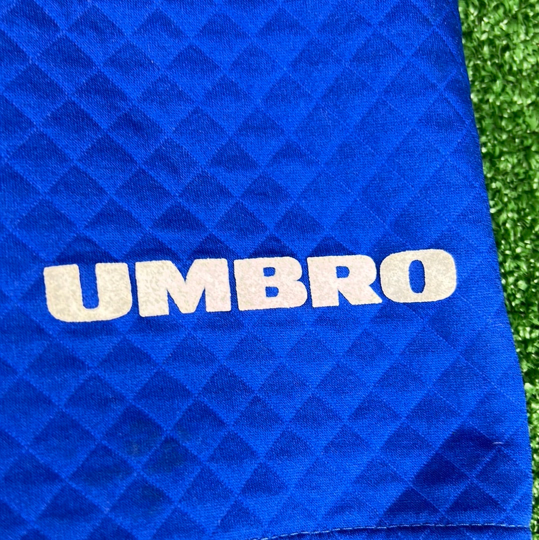 Info: The shorts were used as the goalkeeper shorts matching the blue keeper's shirt at the time. The lighter blue don't he side matches that of the funky keepers shirt that season.