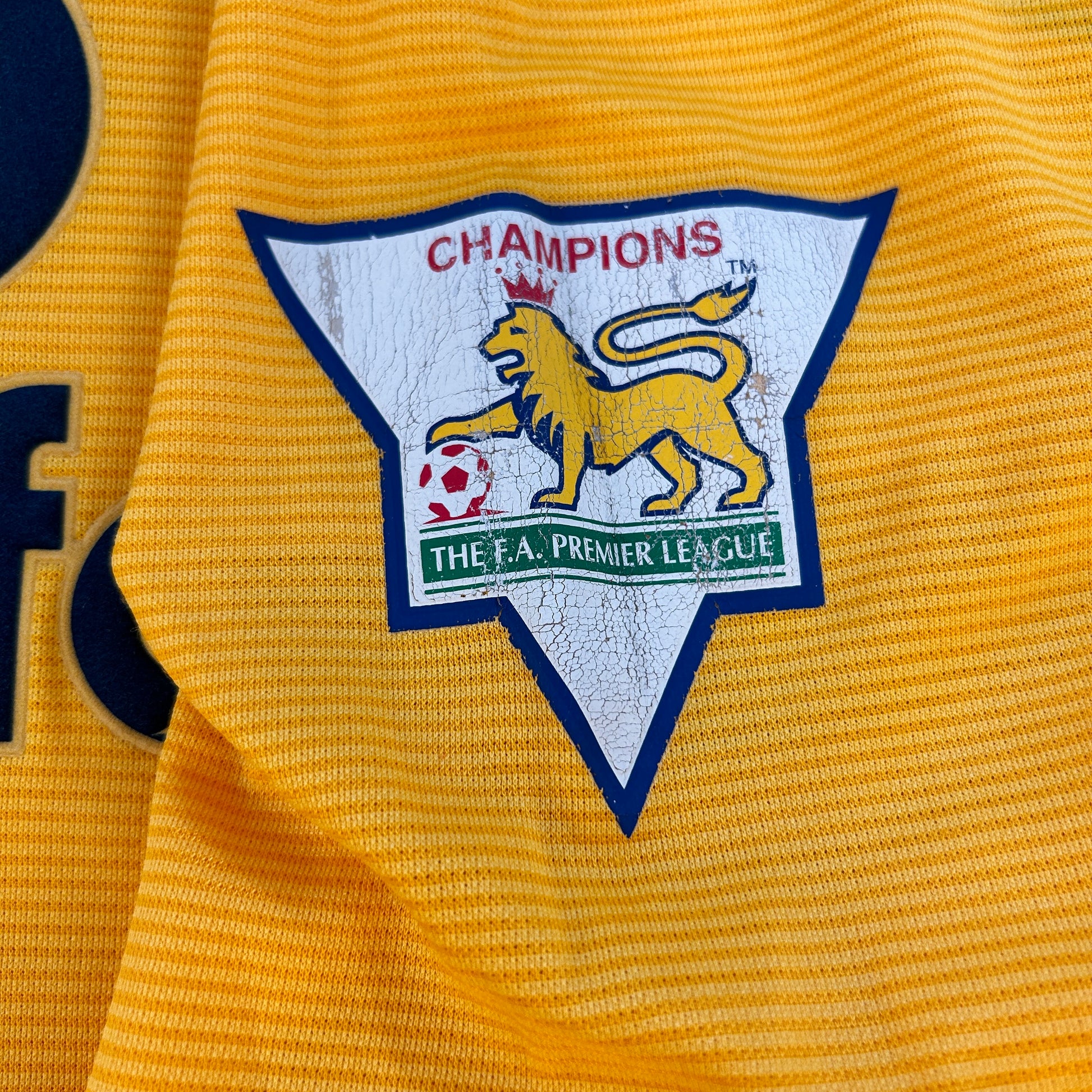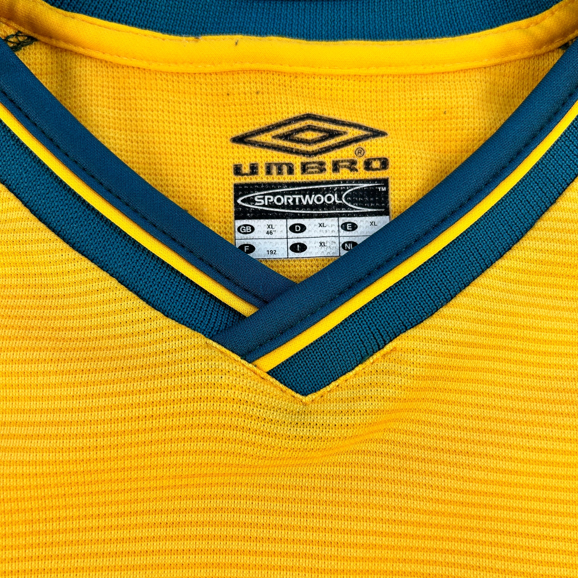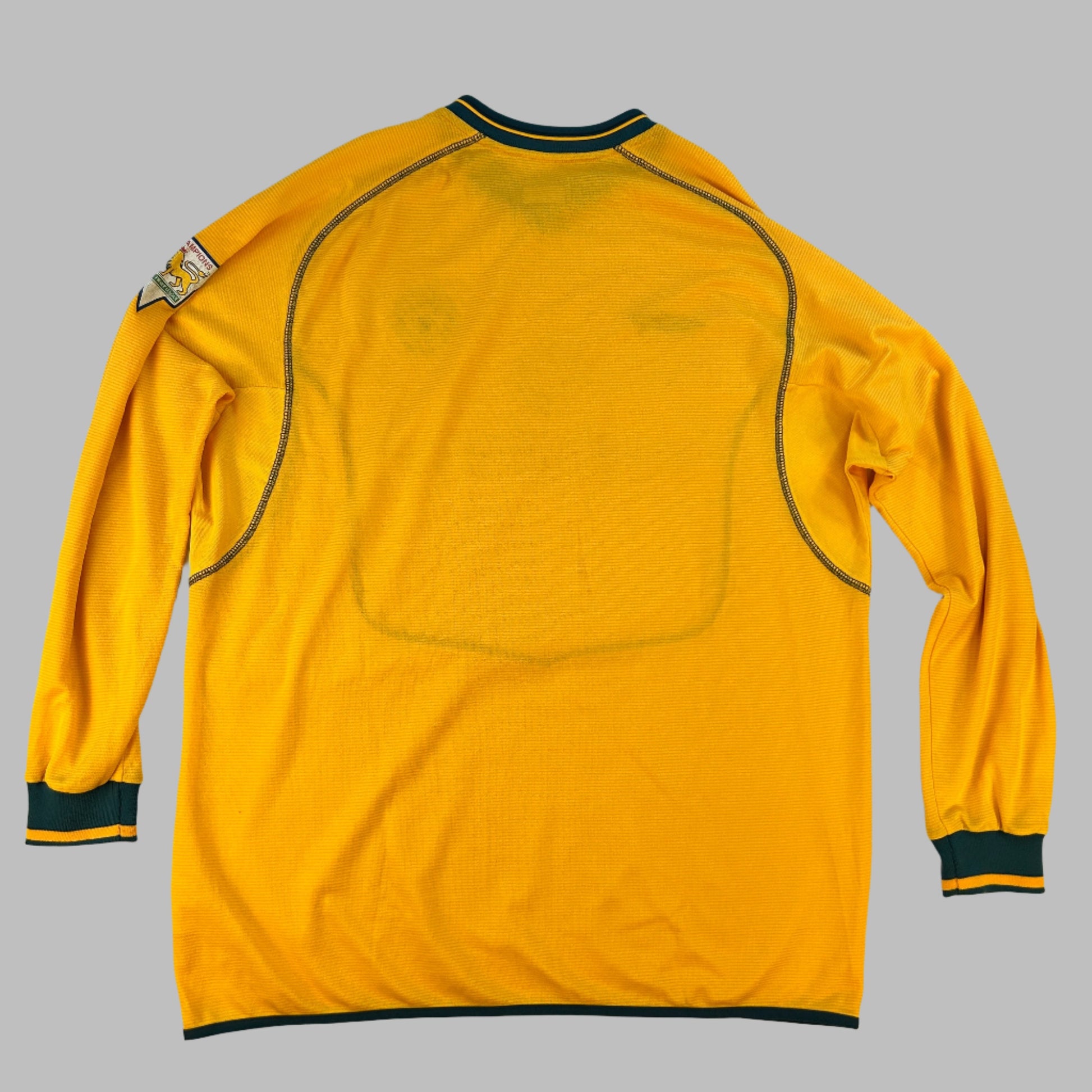 Shirt info: This is a rare yellow goalkeeper shirt worn by Manchester United from 2000 to 2001 and 2002. It is part of the Umbro Sports wool collection and is thick and heavy compared to a modern-day football shirt.