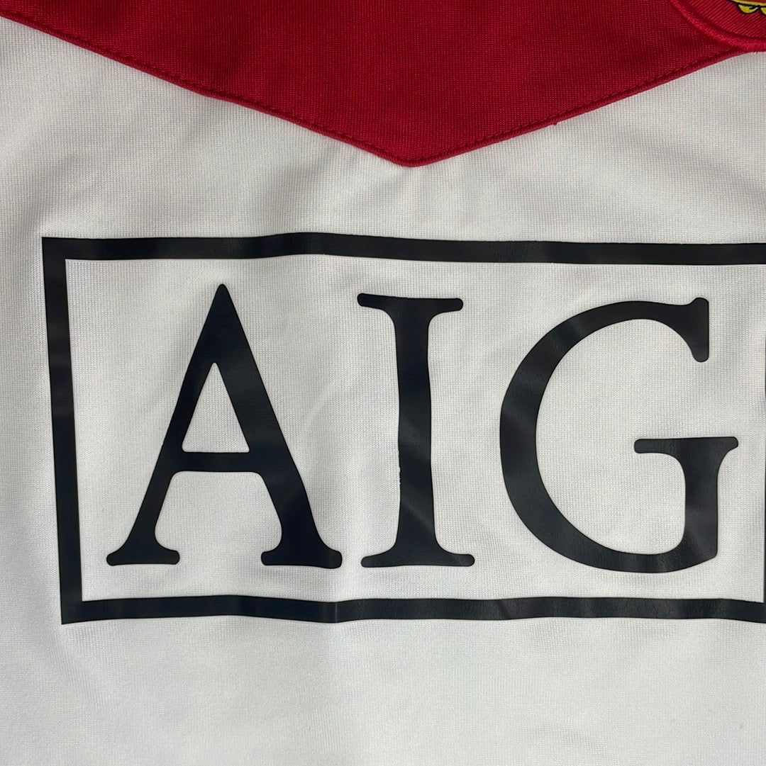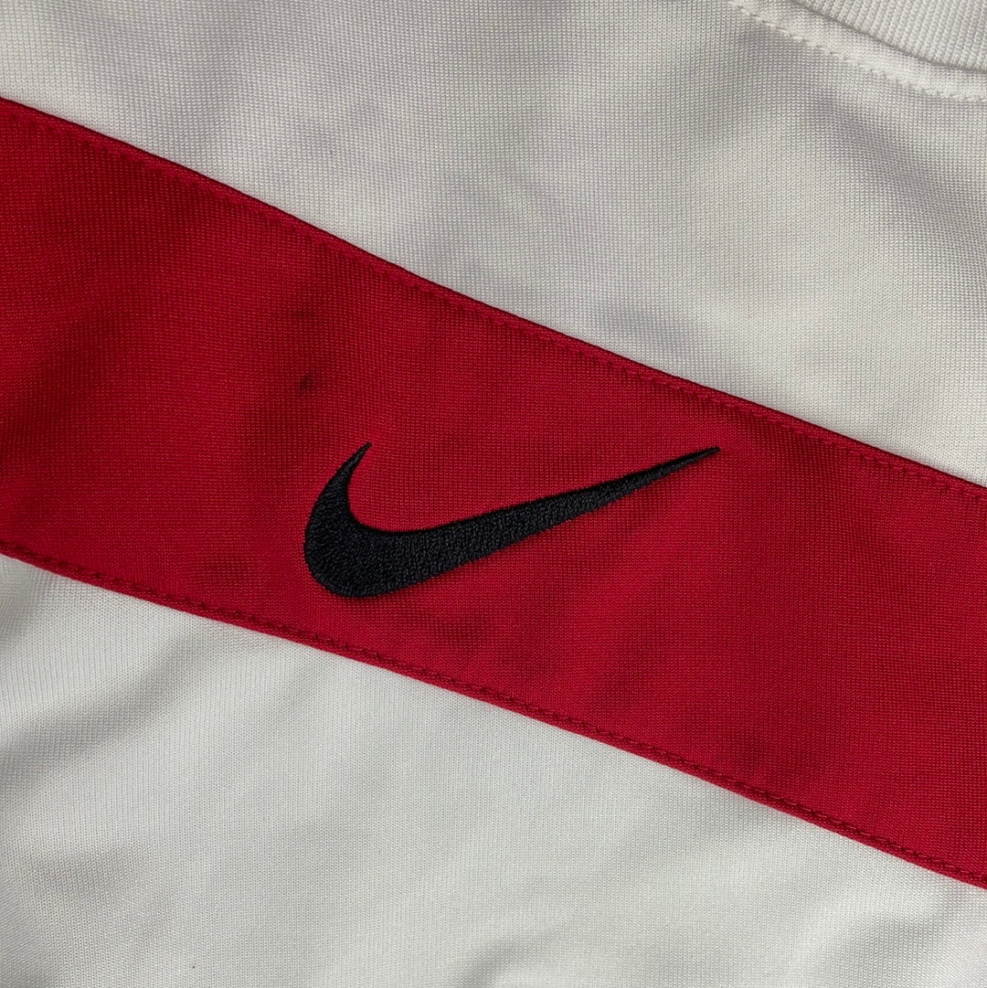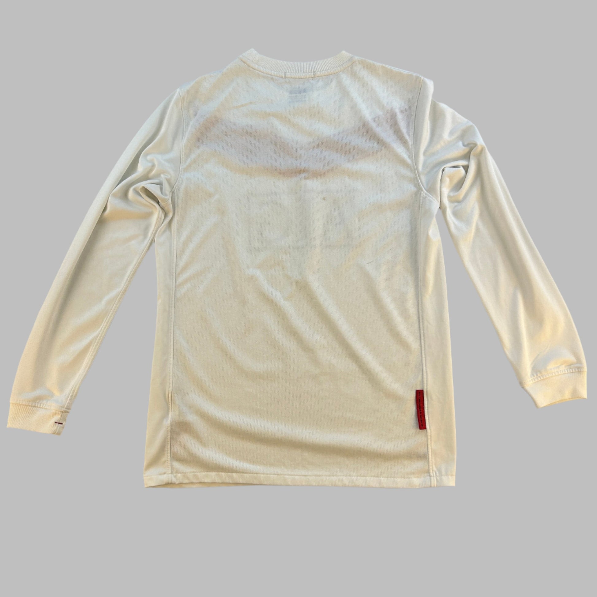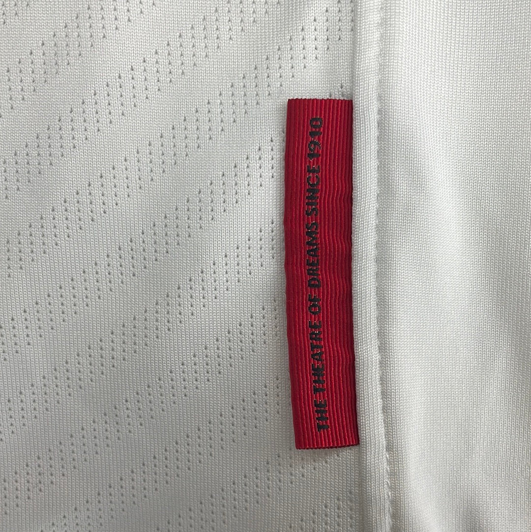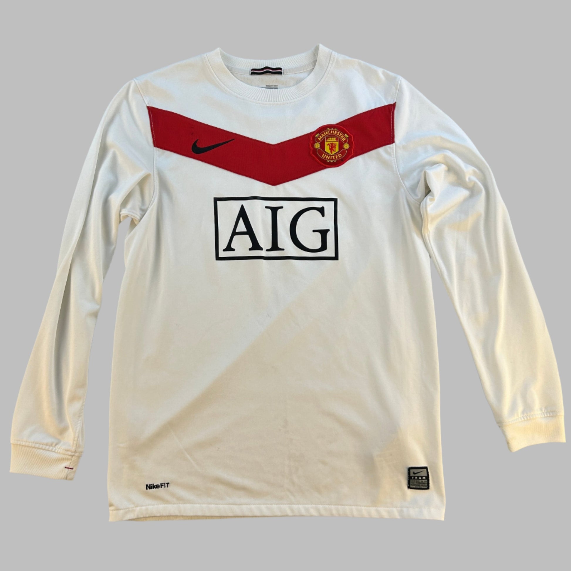 Shirt info: A classic Manchester United goalkeeper shirt from the 2009/2010 season. A white shirt with a red V. The design matched one of the original Manchester United shirts that was worn in a match as a one-off special this season.
