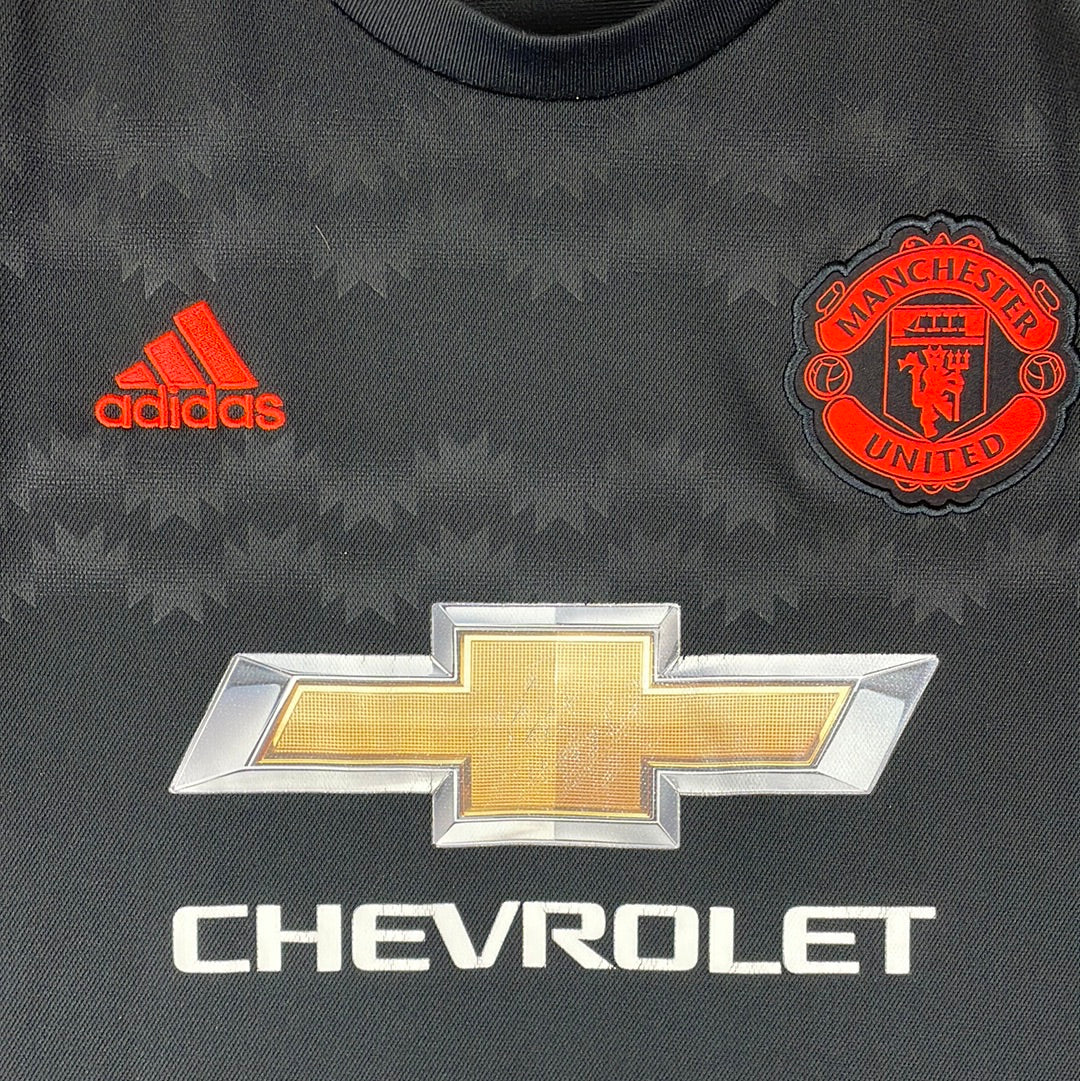 Shirt info: The first Adidas Manchester United third shirt. Adidas kicked things off with a throwback to the 1990 snowflake shirt. The same pattern is incorporated into the black material, which is a great look. The shirt's details are in almost fluorescent orange.