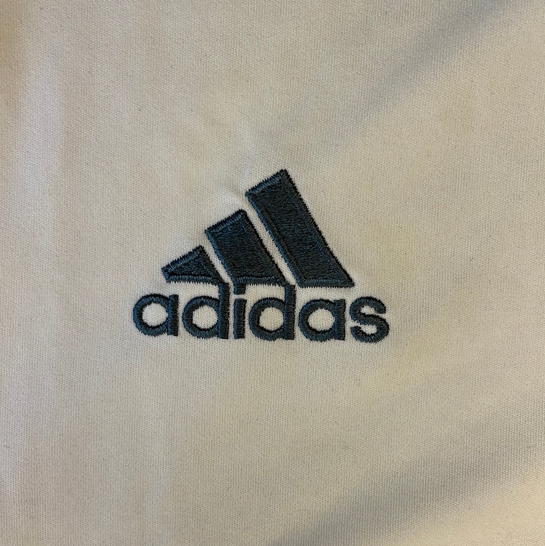 The Manchester United third shirt in the 2016/2017 season. A white third shirt with hexagon patterning on the sleeves in a dark grey fading to light grey. The Adidas series are down the side of this shirt, common on shirts with a shoulder design.