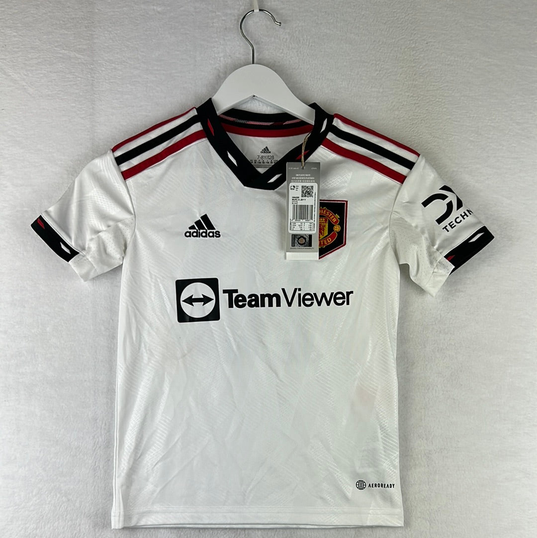 Shirt info: A nice white away shirt for Manchester United in the 22/23 season. This has the team viewer sponsor in black on the front and the DXC sleeve sponsor.