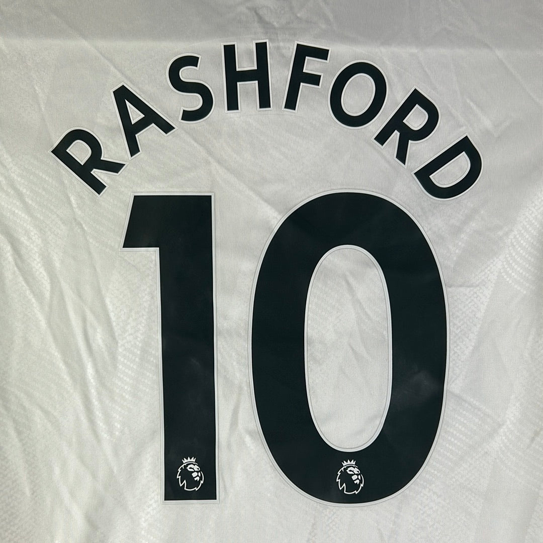 The 2022/2023 away shirt for Manchester United. Rashford 10 Premier League print.