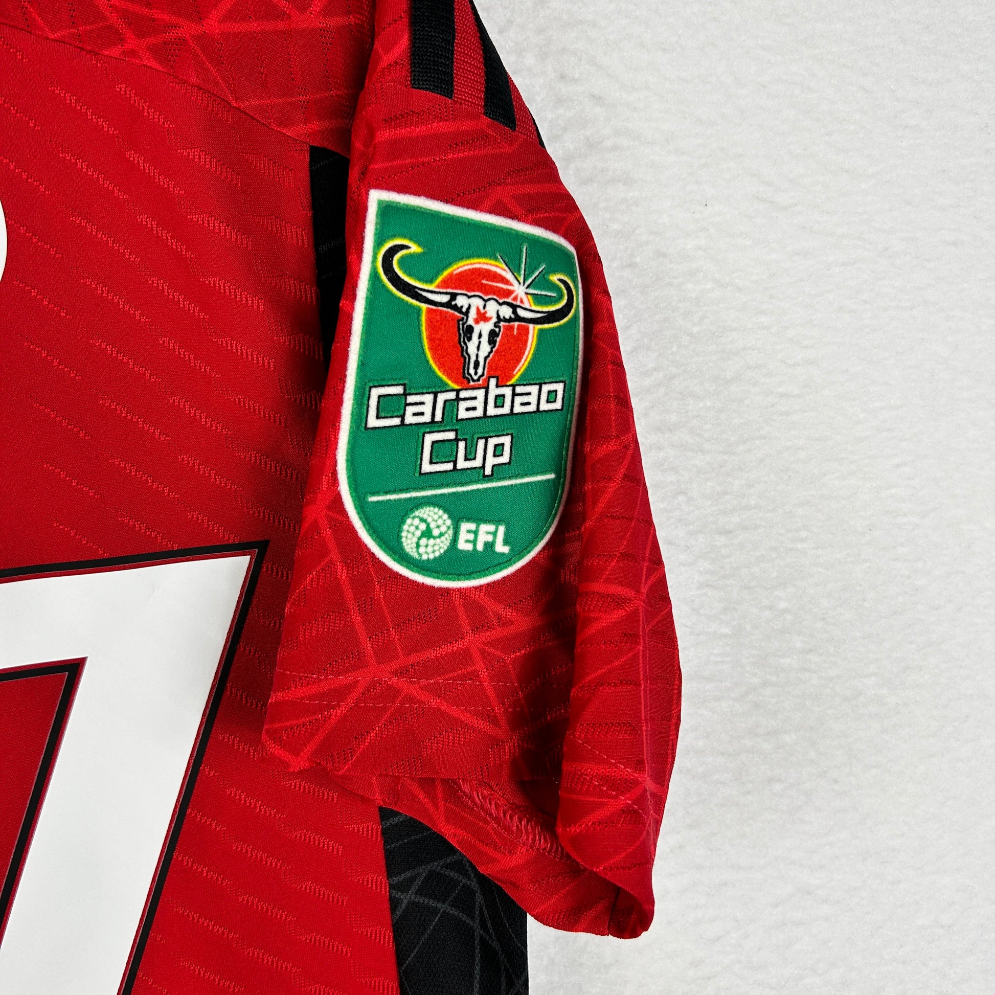Shirt info: An authentic heat.rdy Manchester United 23/24 home shirt, player issue. This is the player's version of the home shirt, which was issued for Mainoo for the game against Newcastle United in the cup. Mainoo was returning from injury and had been on the bench in the previous Premier League game. He was expected to be on the squad for this game but was pulled out due to an injury.