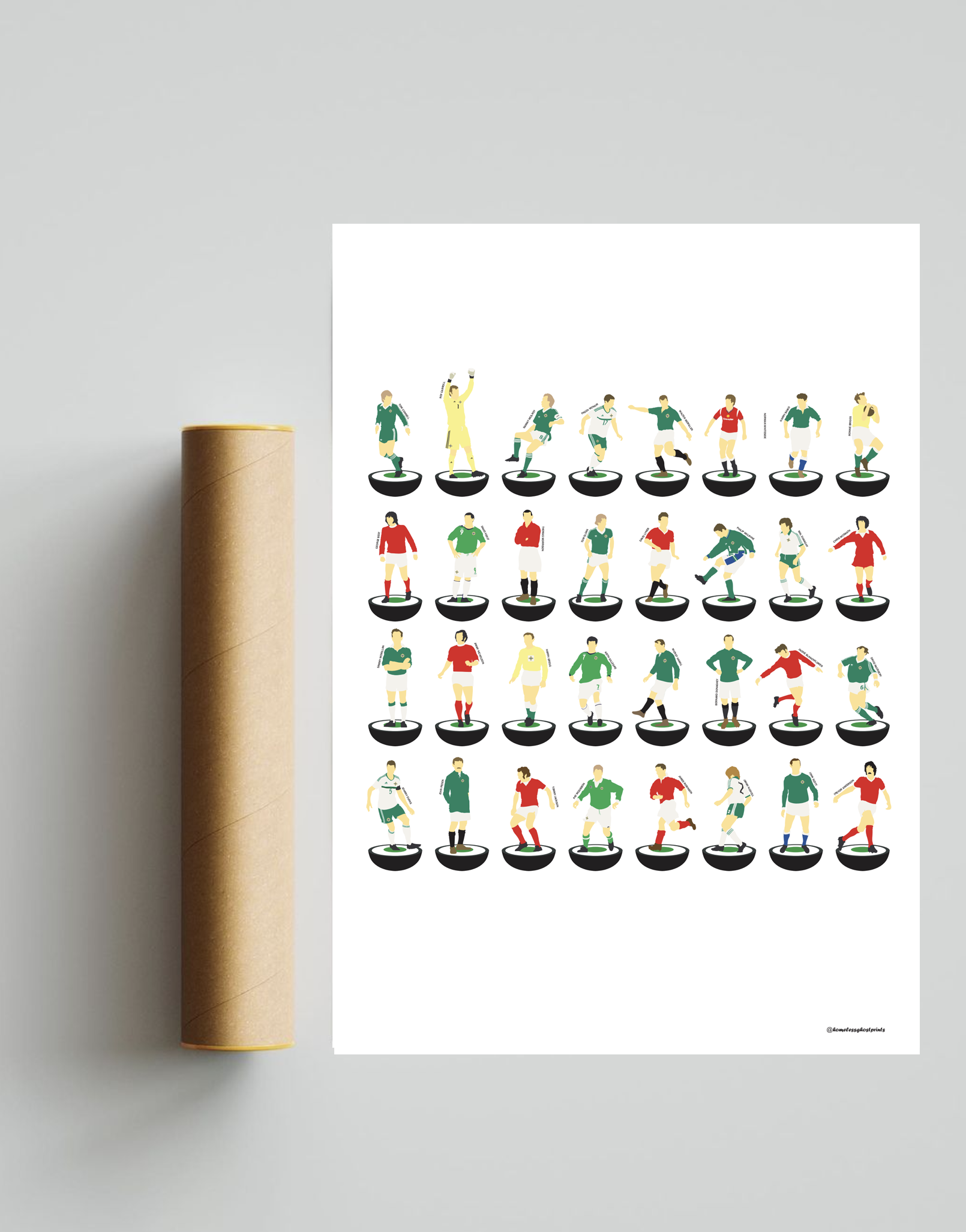 A3 print on 300gsm paper. Past and present players over the long eventful history of players who played for both Northern Ireland and Manchester United.