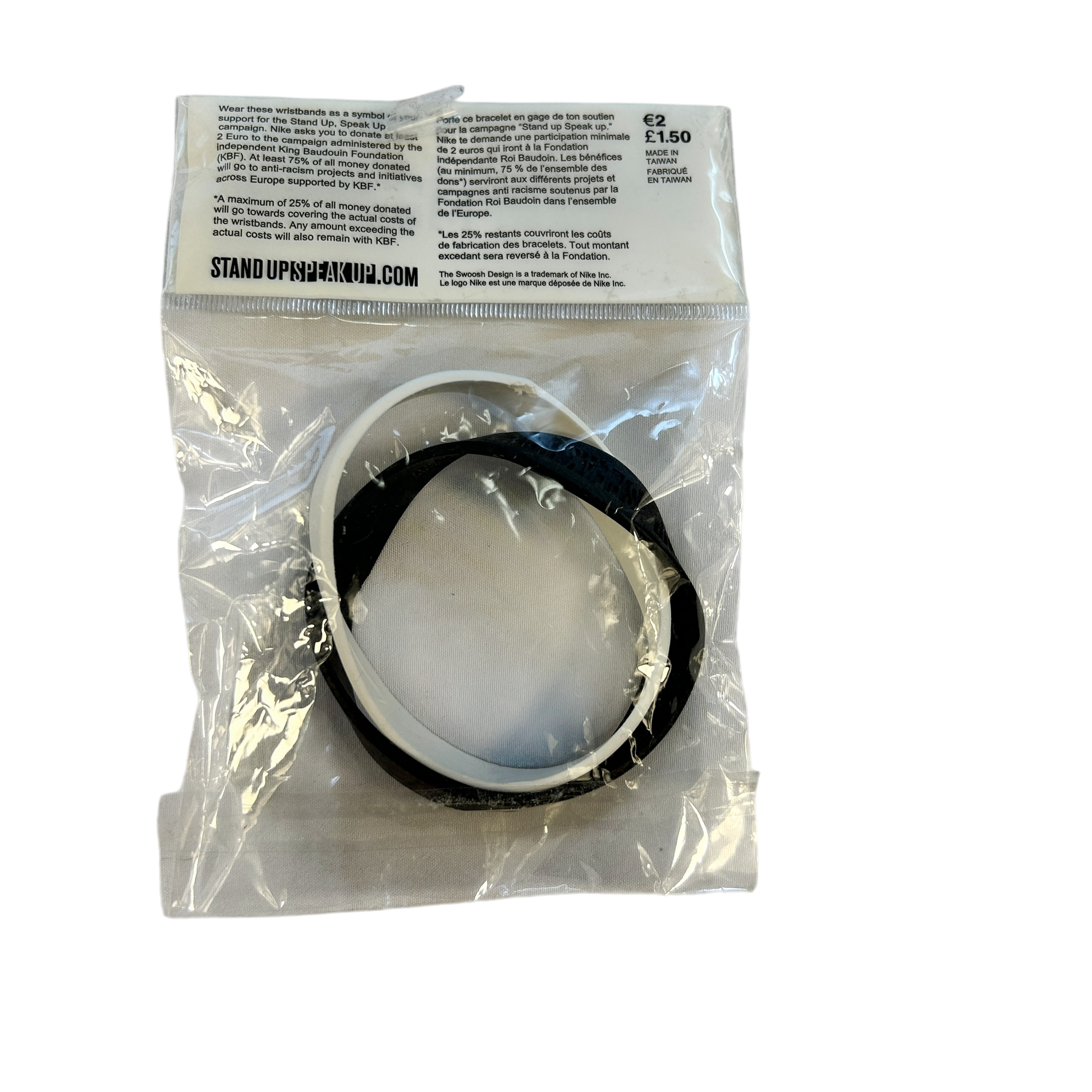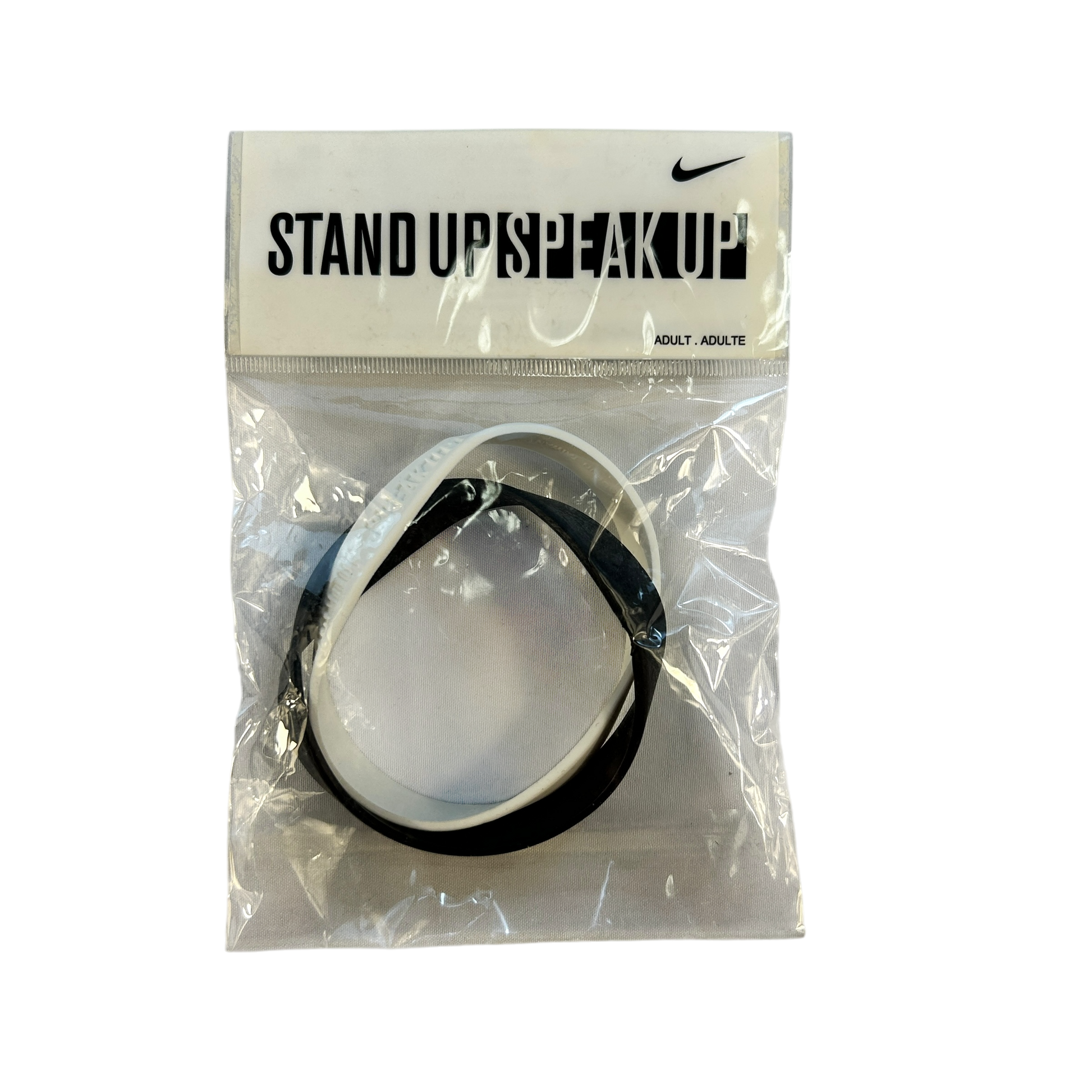 A Nike Stand Up Speak Up wristband is still in its original packaging, which has never been opened.