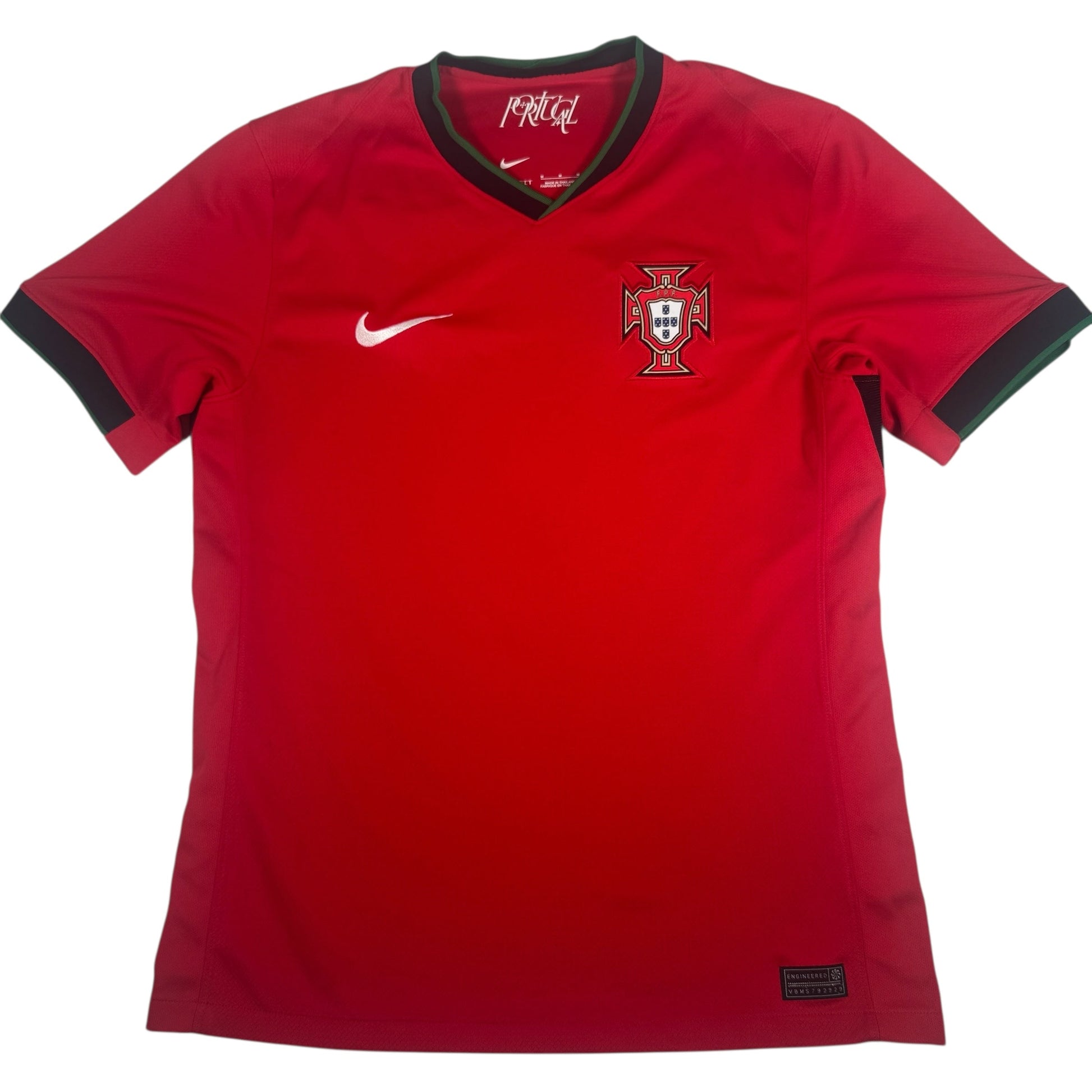 Add a classic to your collection with this original Portugal 2024/2025 home football shirt in adults size Medium.