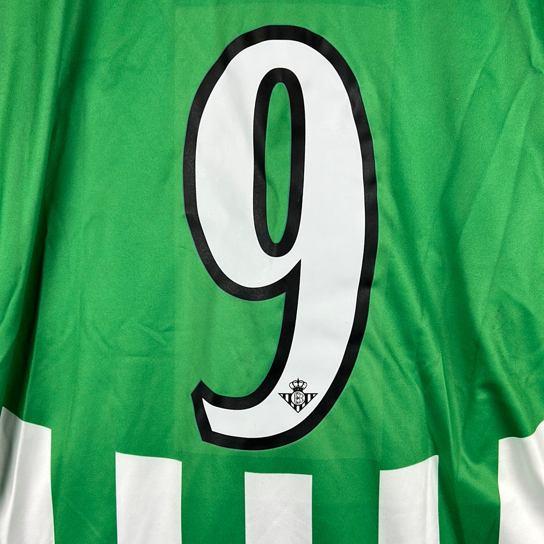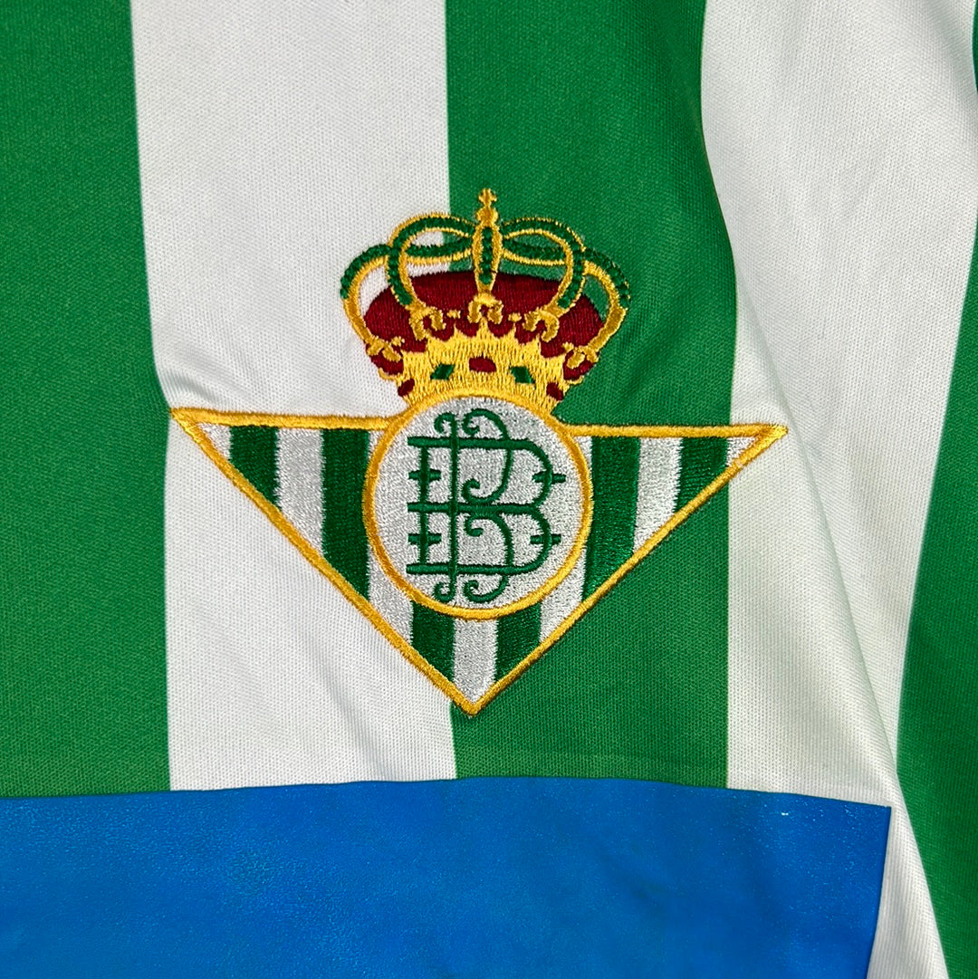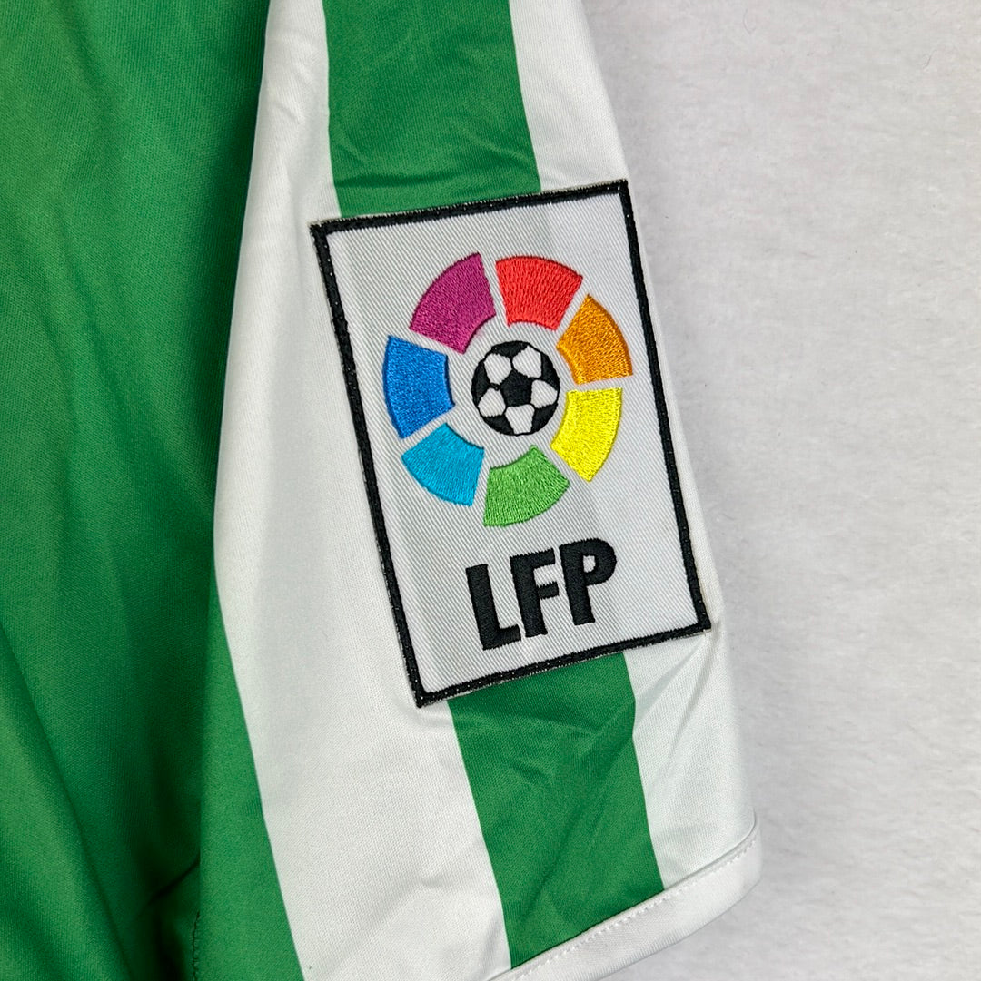 Player Issue Details: Original player issue shirt. The Betis logo and badge are fully embroidered. the sponsor is heat printed on. the La Liga sleeve badge is hand-sewn and heat-pressed.