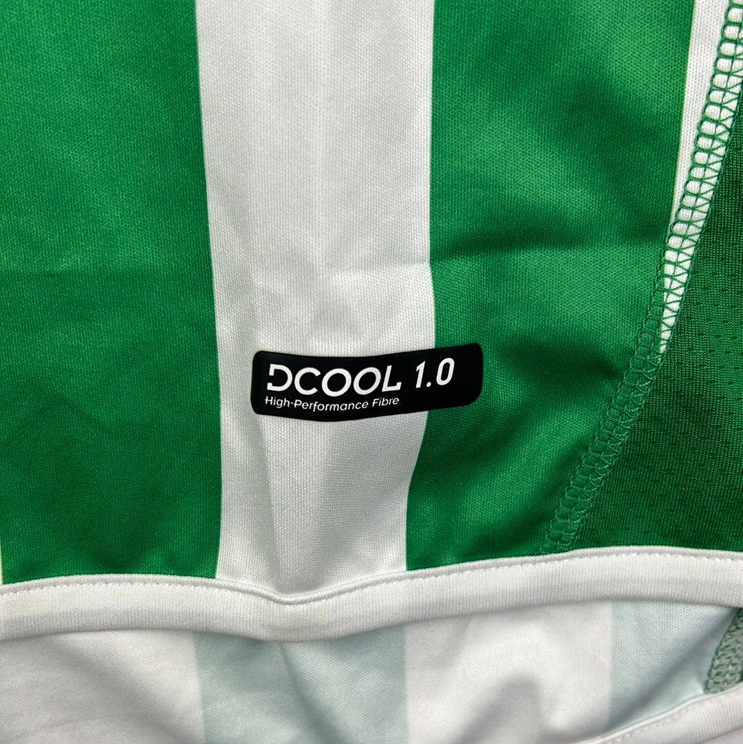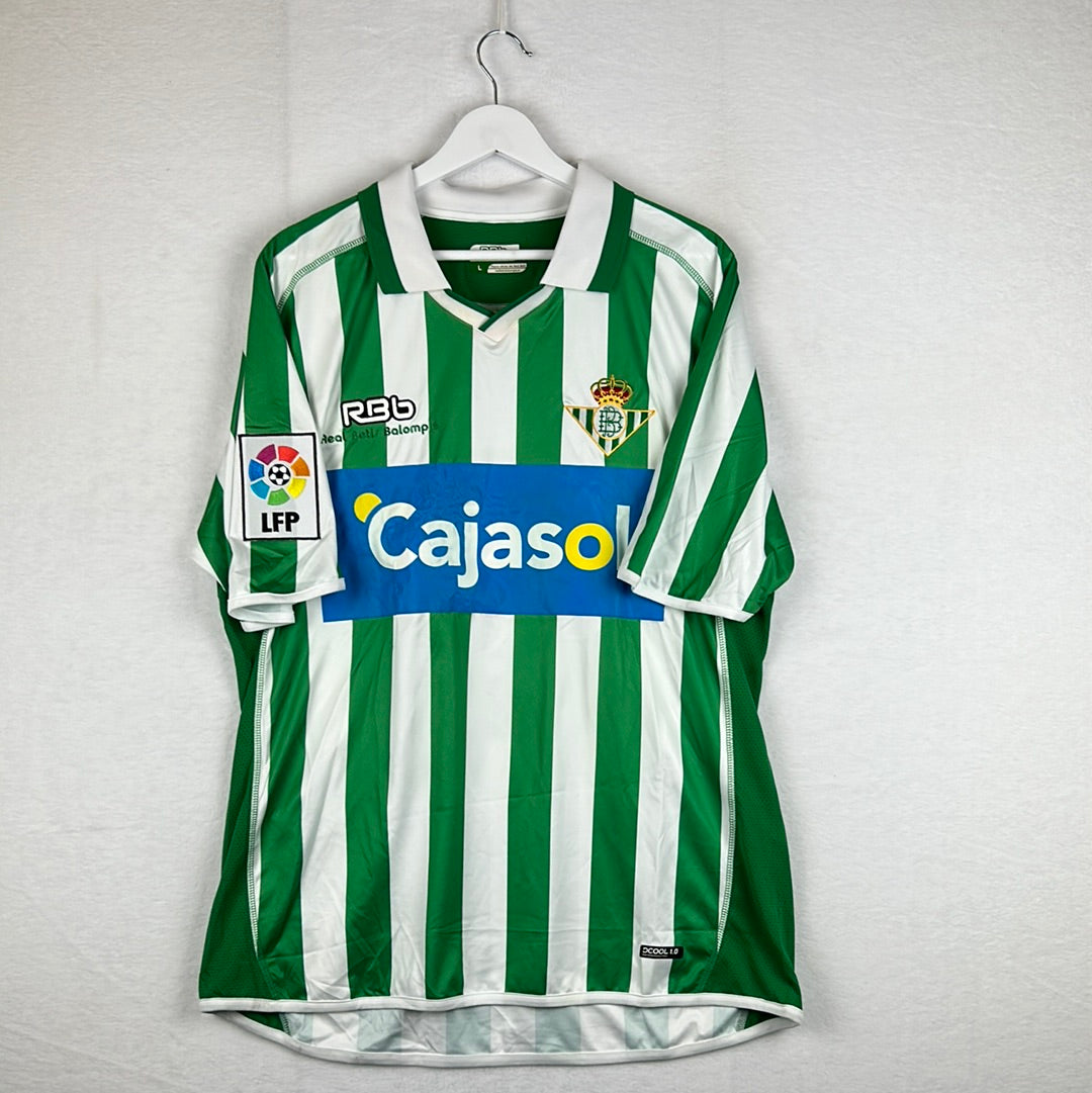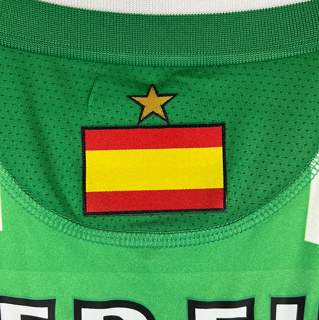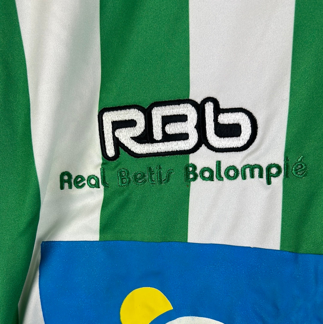 Player Issue Details: Original player issue shirt. The Betis logo and badge are fully embroidered. the sponsor is heat printed on. the La Liga sleeve badge is hand-sewn and heat-pressed.