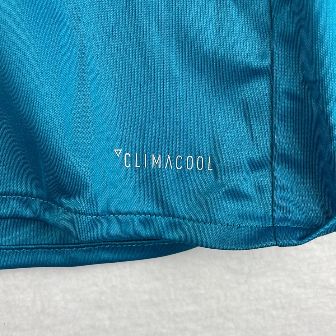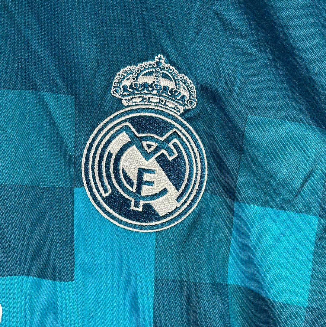 Shirt info: The third shirt for the 2017/2016 season. It's a less common Real Madrid shirt. This is a funky green shirt with darker green square patterning. This is one of the best Real Madrid shirts of recent years. The prime, Adidas logo, and Real Madrid badge are all detailed in white, as is the front sponsor print.