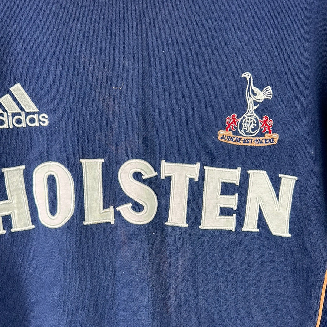 Jacket info: This is a dark blue and light brown trimmed jumper with a front Holsten sponsor. It was part of a range of clothing and training wear from Spurs in the 1999/2000 season.