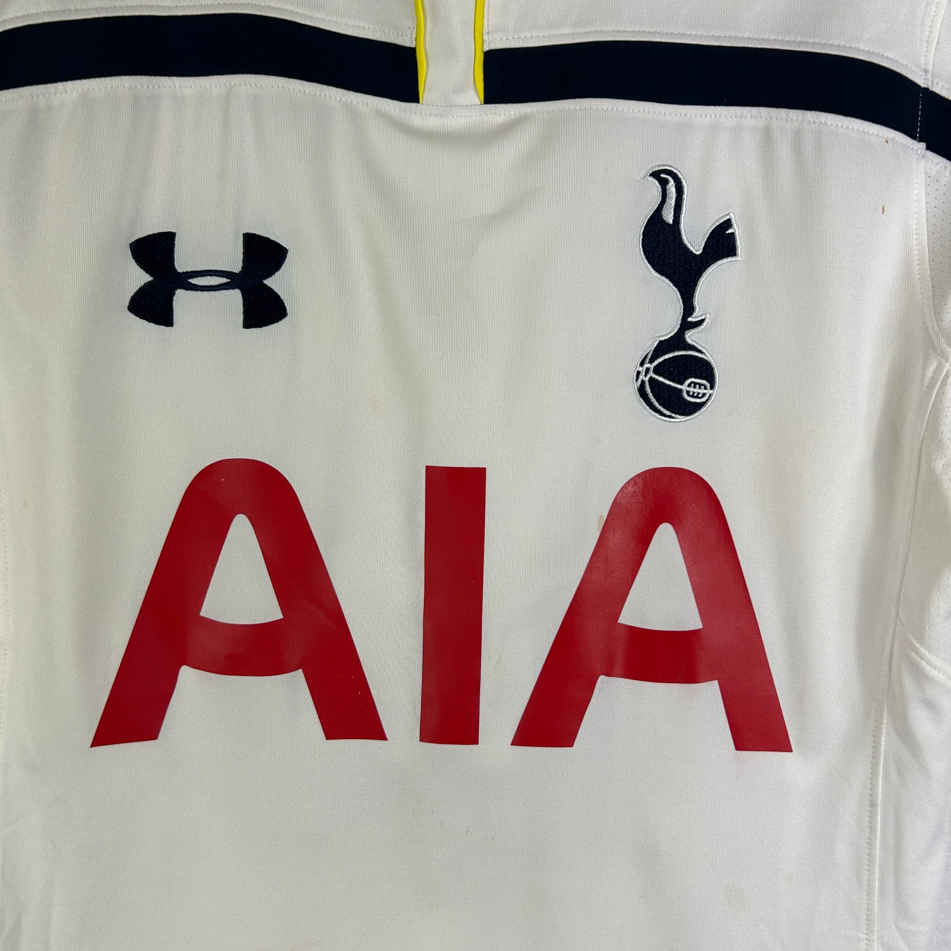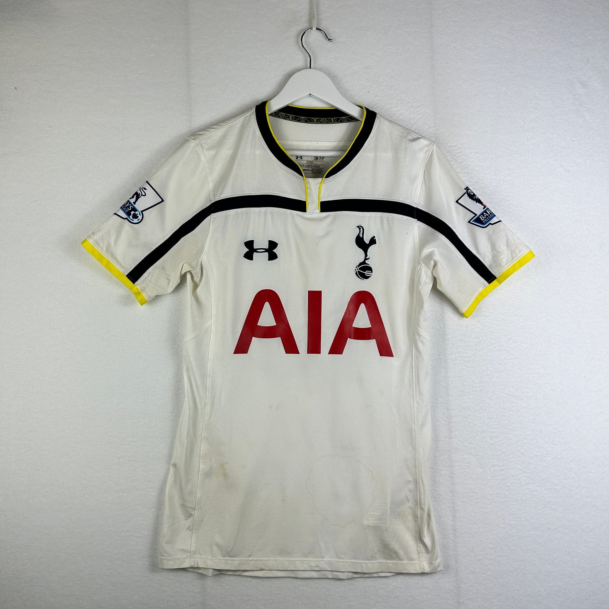 Player Issue Details: A Tottenham player was issued a home shirt. The code for a player-issue shirt has been checked. The shirt has the Premier League patches on the sleeve; these are correct for the 14/15 season.